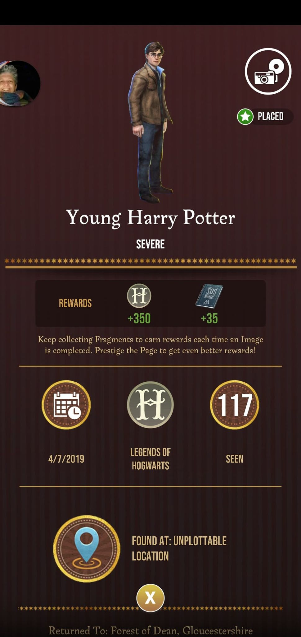 My advice is place max dark detectors at different inns (not just in the same area) and especially if you’ve gotten a young Harry from dark Detectors placed at one inn, don’t expect to see more from that inn, try others. And always save at least one trace charm in case you do see him. It will still be a painfully slow collection process though. (Took me dozens of max DD to get the rare sighting of a young Harry, luckily I had a ton stored up, plus have a local friend who worked with me to place more. If you can join with friends to share the DD burden that’s ideal).