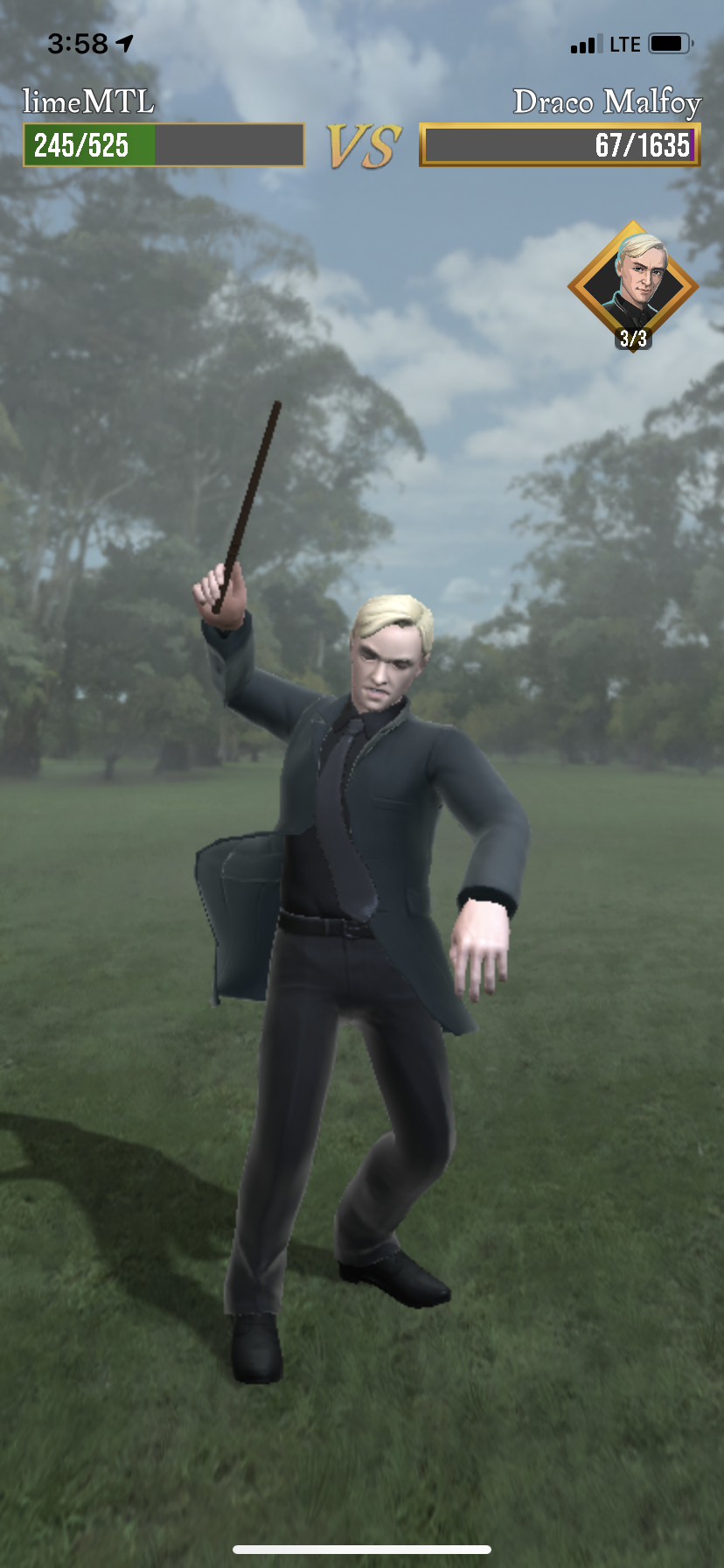Here is how it looks fighting Draco Malfoy without using any potions: