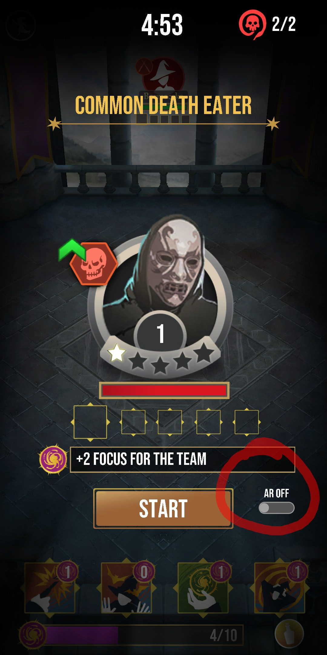 Look next to the foe start button, there's a lovely hidden little AR button there that sometimes gets hit.