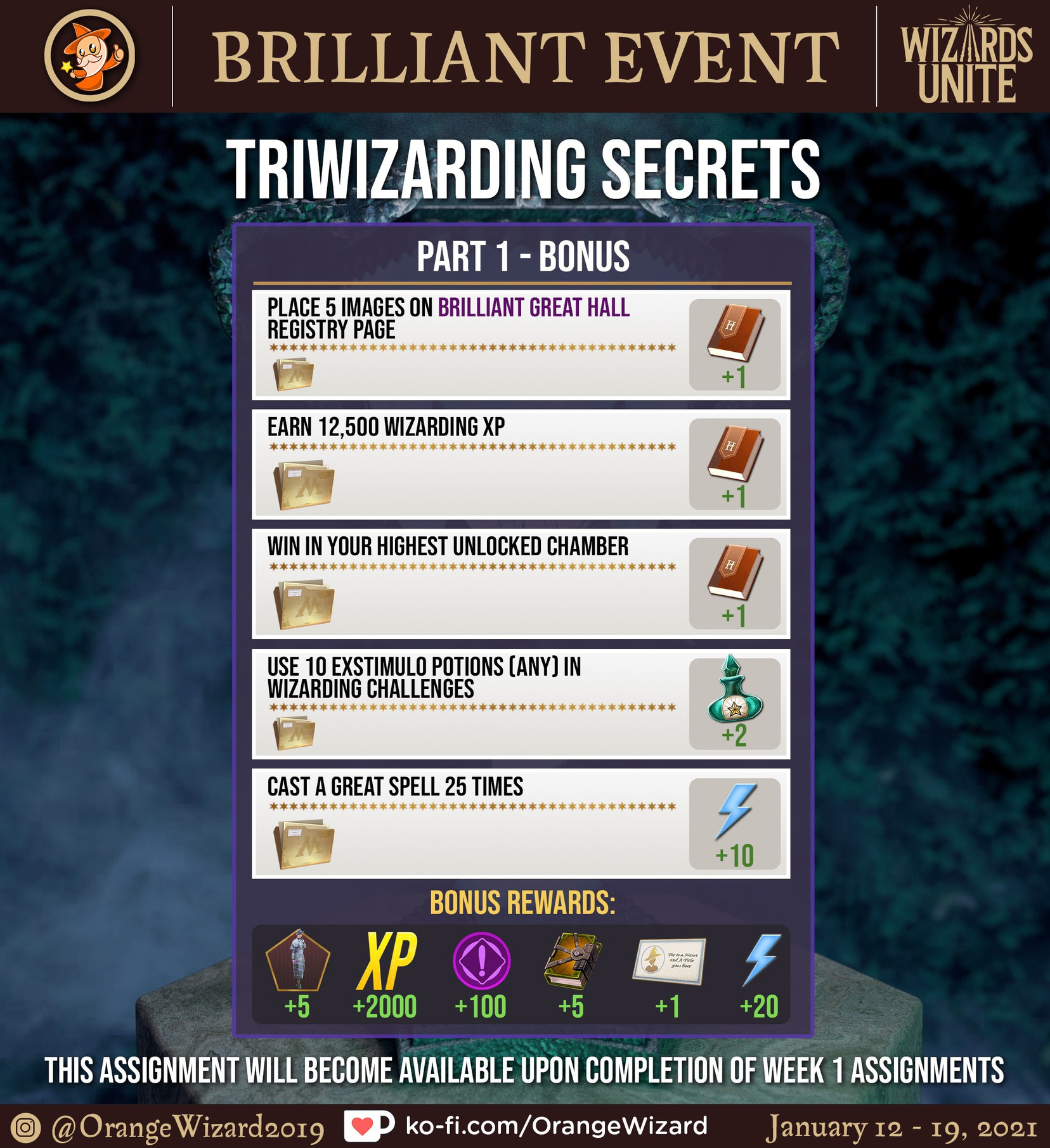 The Portkeys for this event will be 1.5km. As a reminder, Part 1 Portkeys will give you Part 1 rewards anytime you open them, even if you wait to open them during Part 2. Keep an eye out for Bonus Assignments that will be available in game after the main tasks have been completed!
