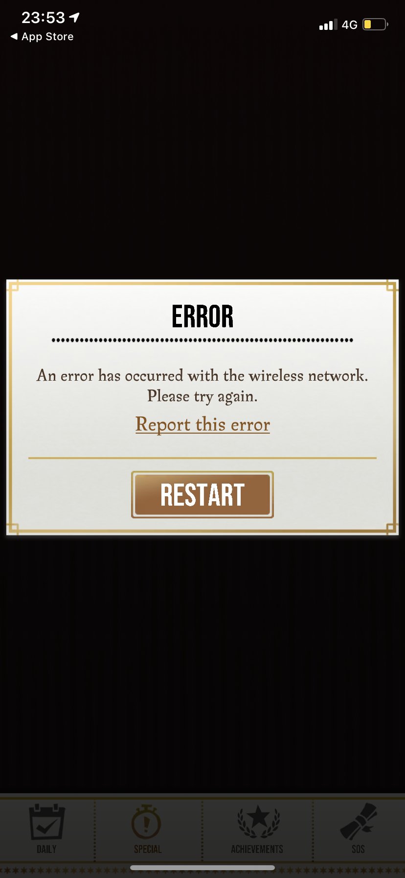 daily and event button blank. Forces restart every time