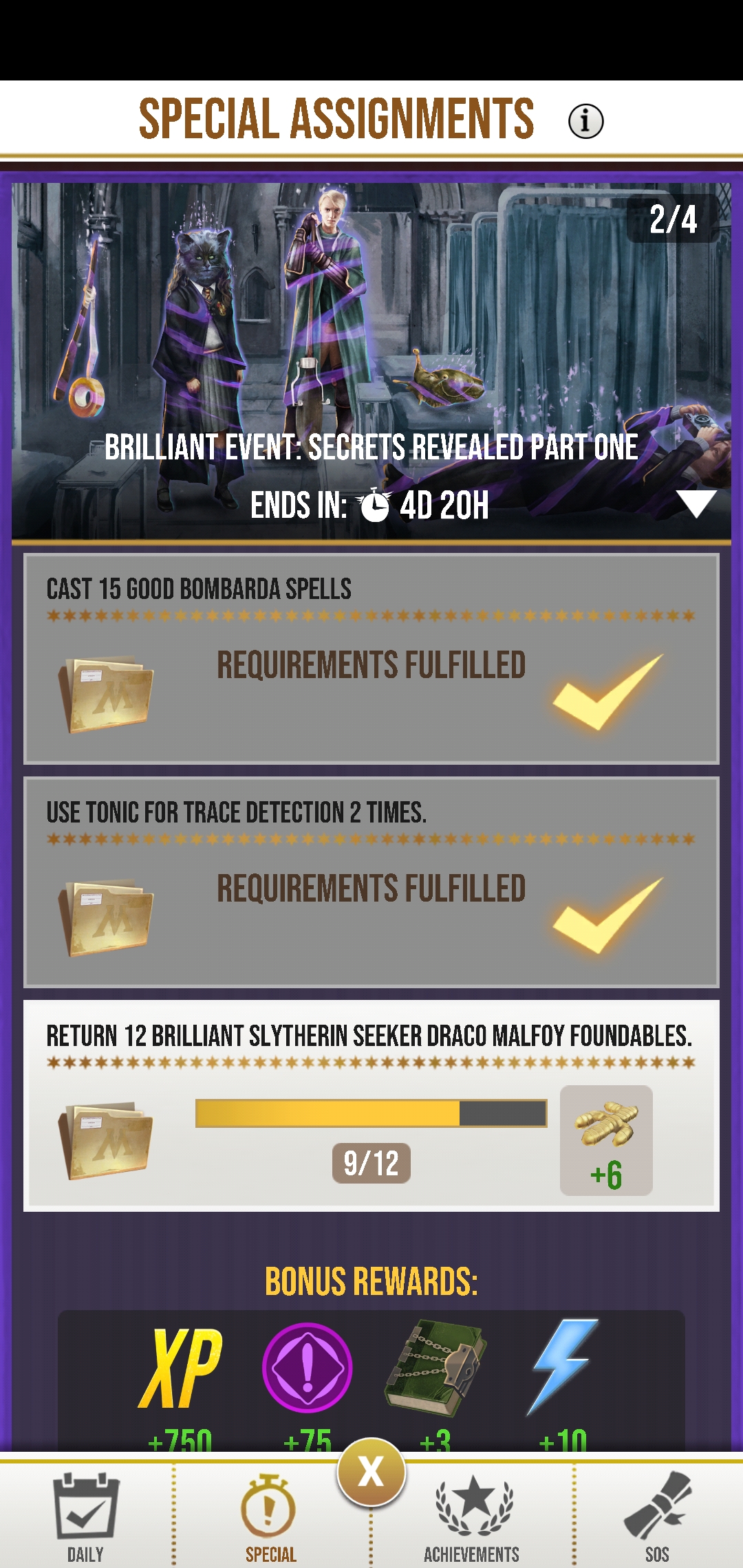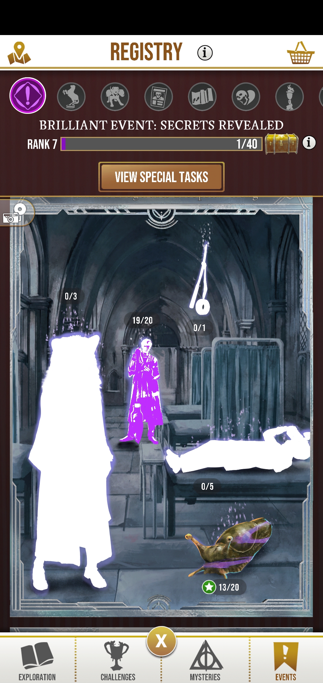 Also now, I'm stuck on 9/12 Brilliant Malfoy foundables in the special task, even though I've returned many more and the registry page shows that I'm returning them... but its not registering on the special tasks so now I can't proceed in the Brilliant event.