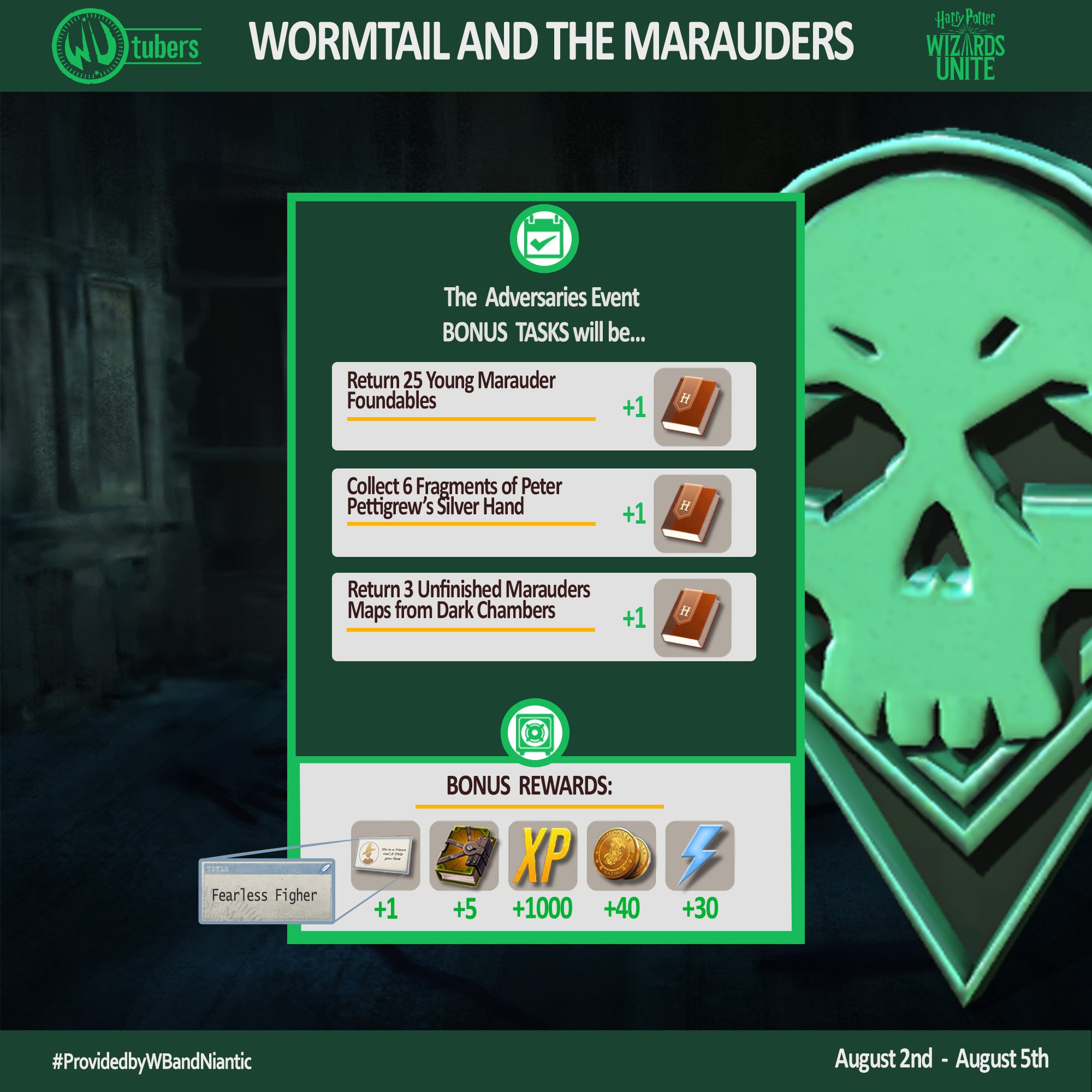 I usually don't complain about spawn rates but here like ashkaa I'm concerned about the tasks as the event is short and goals quite high. Since yesterday and after 1 tftd I've encountered 5 Remus and more Sirius (event related but not task foundables) but only 2 Peter and 0 James.