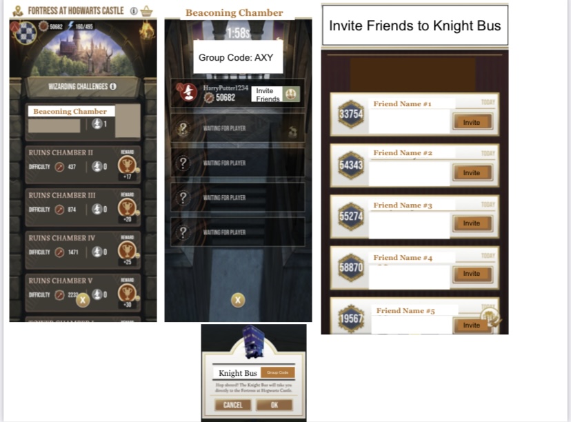 I think most of us have gotten used to the possibly hour long process of finding a in game friend on the Knight Bus. But, I have a solution, that would allow “randomly” to play in ruins without being disrupted by beacons. I have attached a graphic with how all this could work. I included a spot for a group code and a place to enter it. Also there is a spot for inviting your friends into the beaconing chamber. In addition, this could give the option to properly use the Knight bus as both a solo player and group player a lot better. Anything else I should add to this post? I also apologize for the horrible quality, I had to screenshot it from my device.