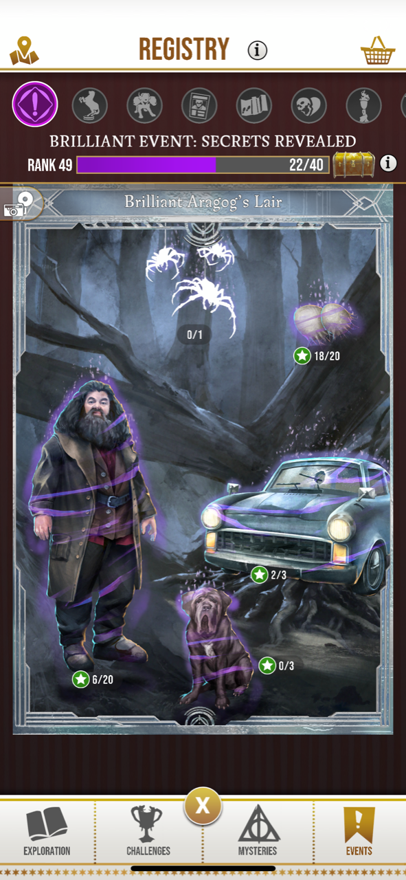 aragog's kids are overall rewards in page 4,, (the +1 image down right), so you need to re-place one of the other images in that page, or week 1 pages to go 5/5. Easiest way is to gather up 5+ BE runes for this event and spam ruins 1 with them until you get 3/3 again, or if you can walk outside or have AS go for the portk 3/3 image.