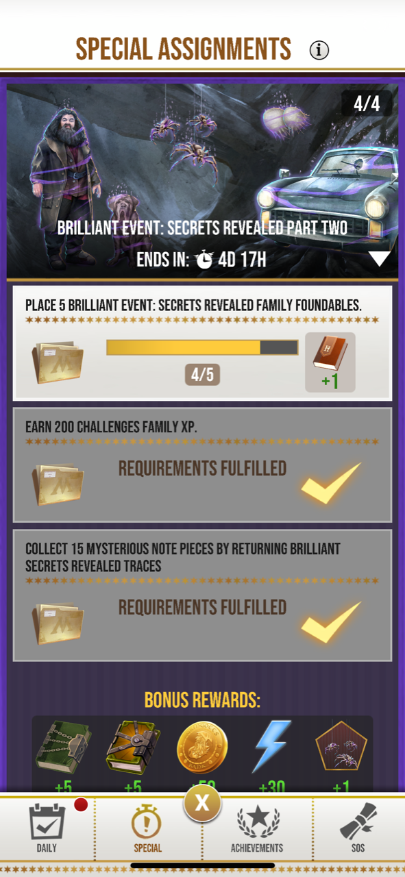 I have placed 4/5 brilliant event family foundables