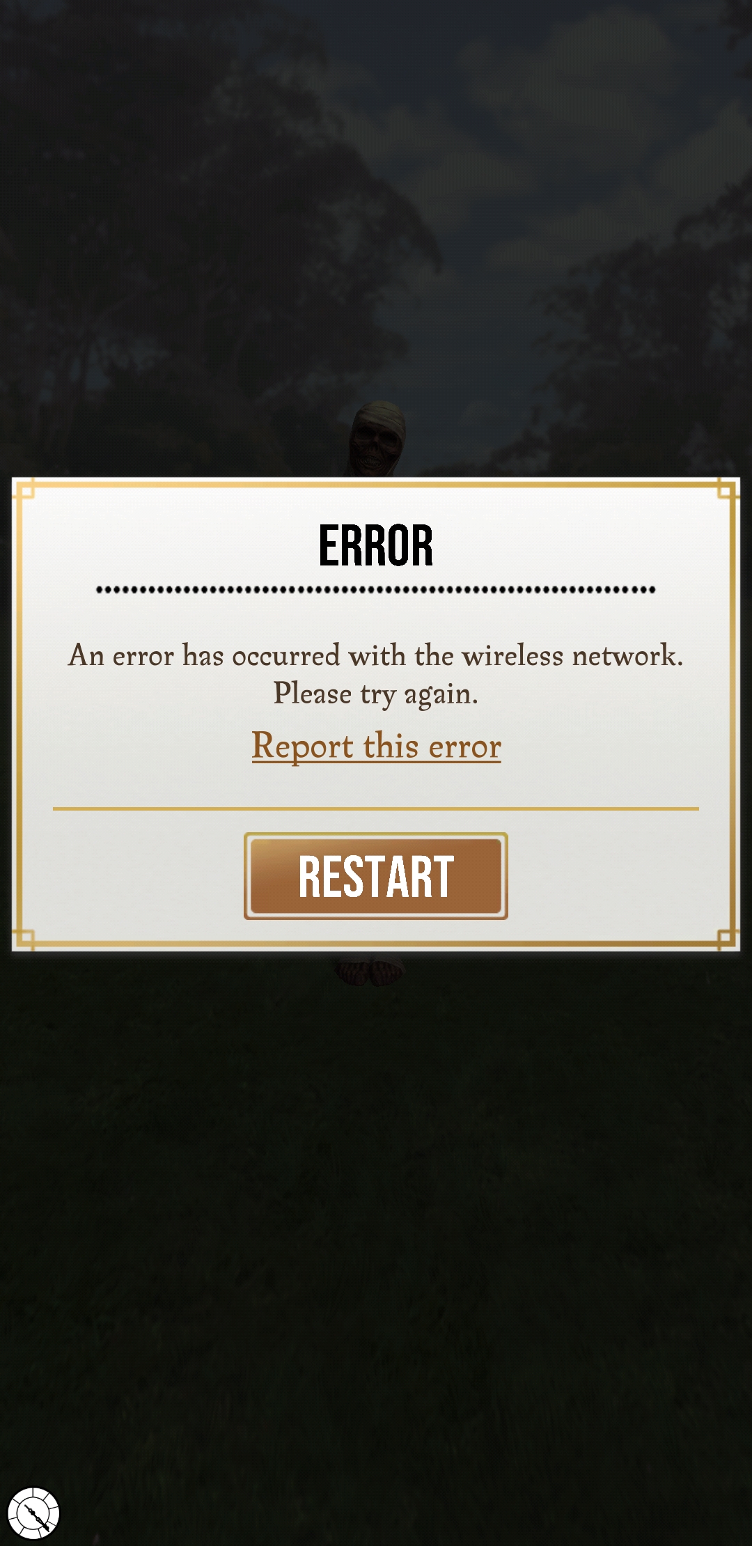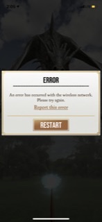 5.) Game reports wireless network error, restart needed, restarts and no option to resume encounter.