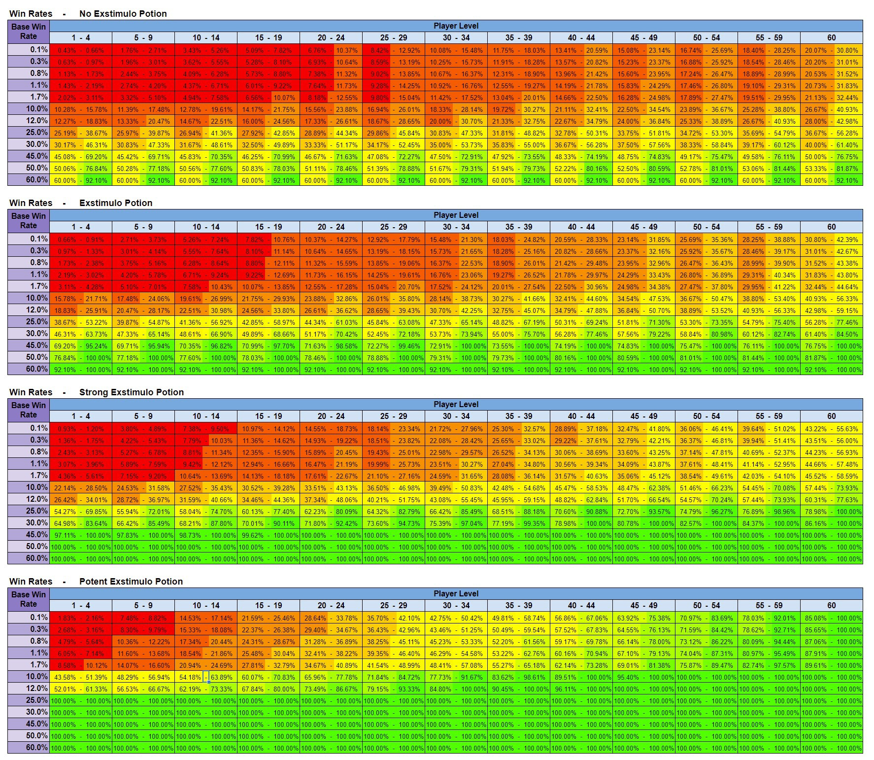 So far, we've learned that there is never a 100% chance for success, unless you introduce yet another modifier: exstimulo potions. Depending on the strength, these can increase your effective base/max return rates as much as 35%. On low or medium level threats, this can virtually guarantee success. BUT... on an emergency level threat like Albus Dumbledore, someone at player level 30-35 will only have a 50% return rate, and that's with a masterful spell cast AND potent exstimulo potion.