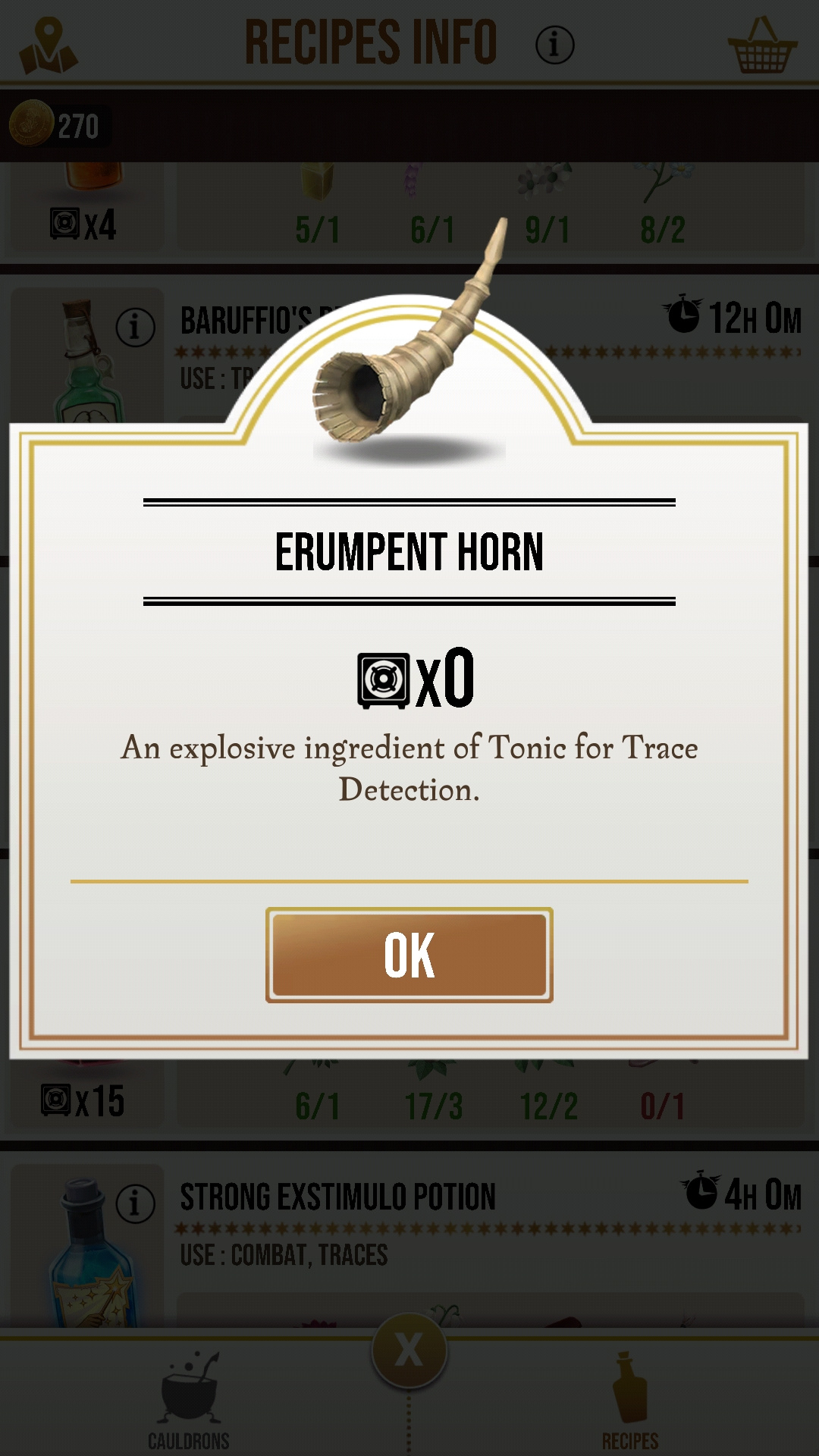 Did you guys forget to add this to the game "Erumpent Horn"? I cannot find it at all. I've driven all over the place and opened several Portkey haven't found it yet. All the other ingredients I have a ton of, I can't make the potion if you guys don't released the last part of the recipe.