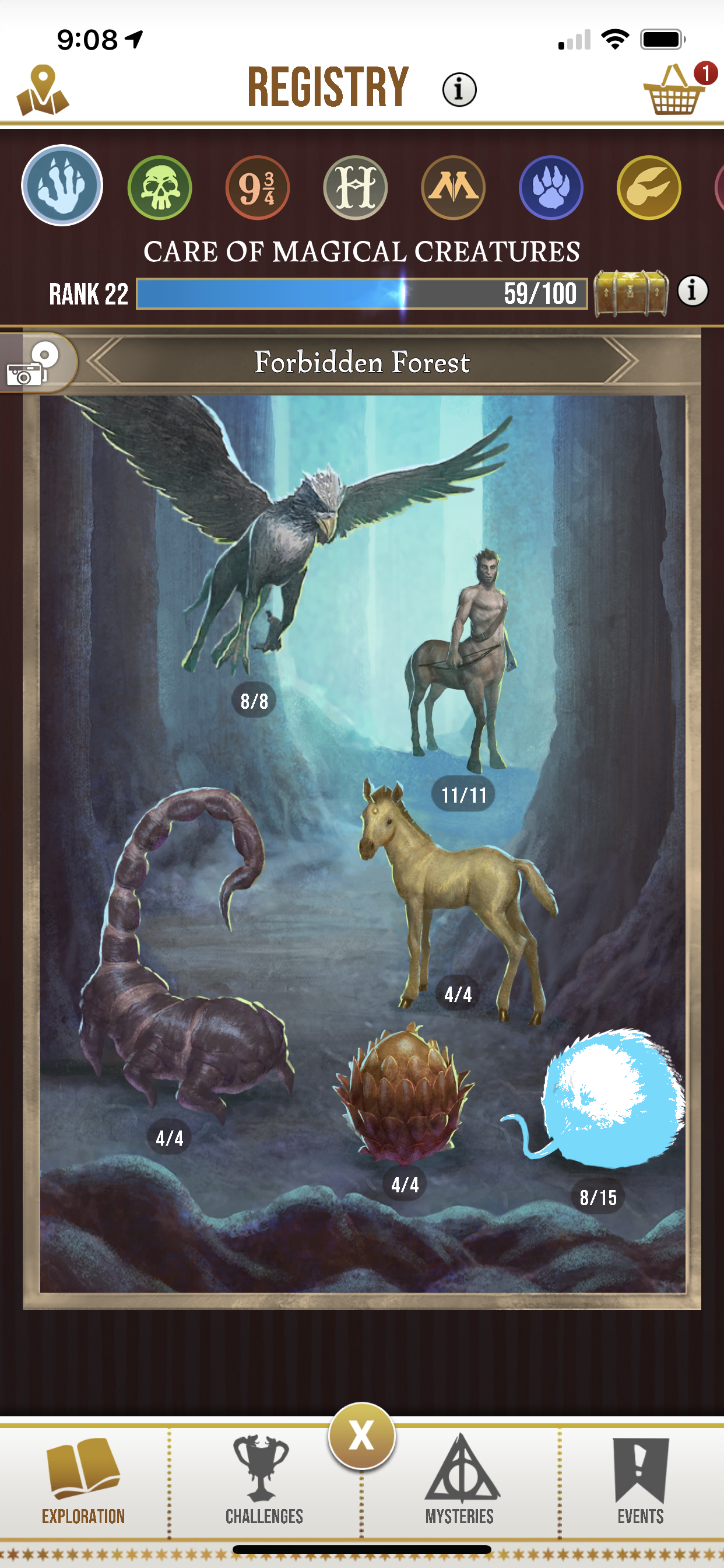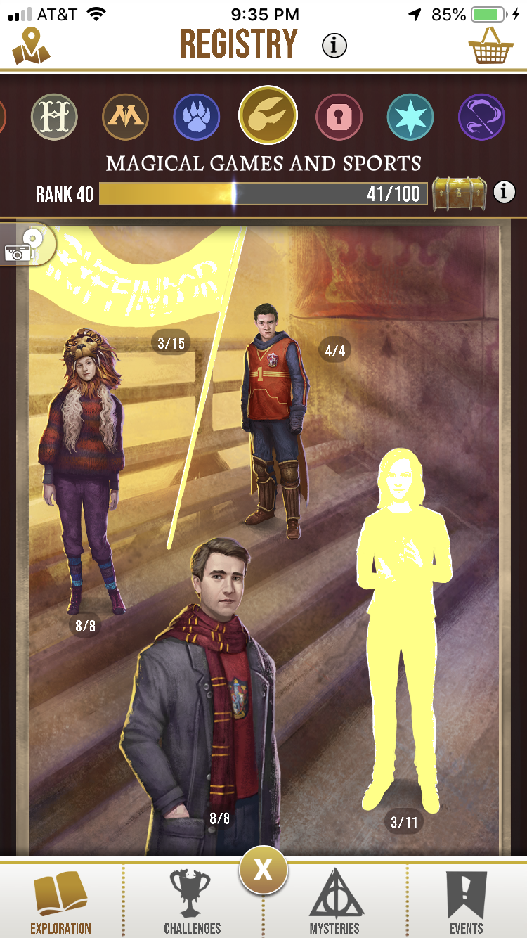I'm at challenge rank 72, and my fragment counts are still pretty low. @Overflow4487's look better than mine, aside from a couple. I just need a few more Puffskein fragments to prestige Forbidden Forest and I've managed to prestige Hogwarts Quidditch Pitch to bronze. I'm still quite a long way from being able to prestige any of the other pages that require fragments from fortress drops. I'm done with the fragments for Hagrids Hut, but Buckbeak is my roadblock on that page (6/11). I only have one Accusation Chair fragment @ZookiTabooki, so you're ahead of me on that one! It'll be a long haul, for sure. Based on current progress, it seems like I'll complete the first lesson plan for my profession long before I reach silver frames on any of the more difficult registry pages.