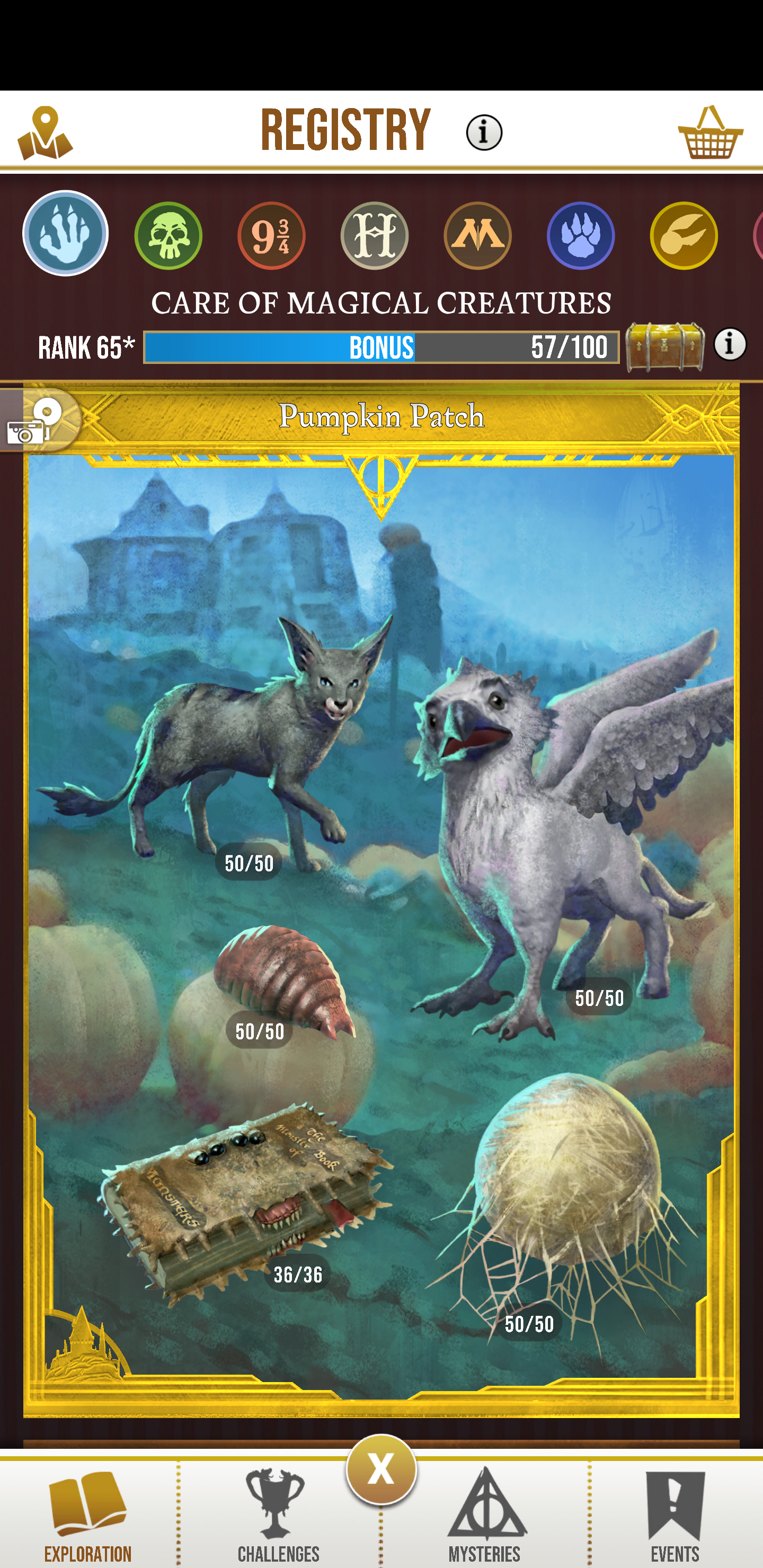 Congrats, everyone! I've knocked out four, so far. I'm pretty close on a couple others though. Pretty much the same ones as @Ginnungagap, but I need a few more memos for the Ministry Atrium page and a couple Monster Books for the Pumpkin Patch page.