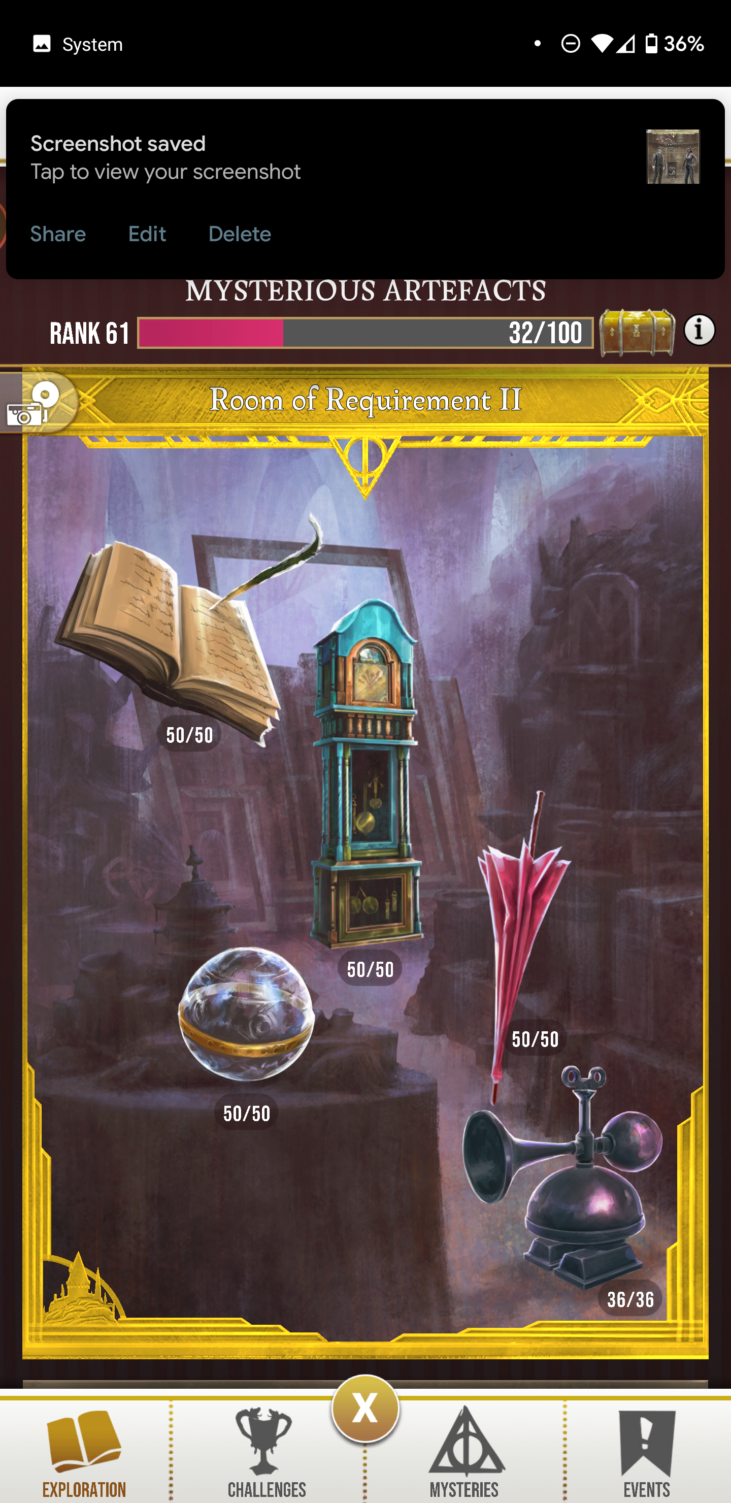 Oh wow @Ginnungagap that’s awesome!!👏🏻👏🏻👏🏻 I still have a few umbrellas and a bunch of dirigible plums to get to finish those two frames. Totally impressed. The others I either just prestiged to gold, or am in the thick of it. Can’t believe you’ve found all those memos, boggart cabinets, and monster book of monsters!😳