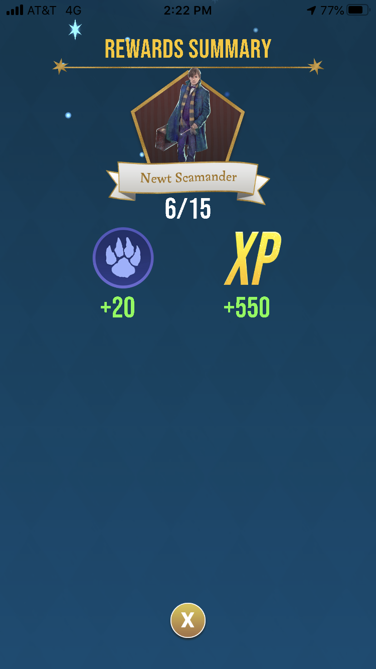 I was so lucky my to place Fawkes today... yes, I said Fawkes. 11/11. I kid you not. Then not 10 minutes later I found my 24 adult Niffler and was able to gold prestige that page. Plus a whomping willow, Percival Graves, and a young Hermione Granger. What an epic day today was! And I did about 20 fortress levels so I have tons of runestone gifts!