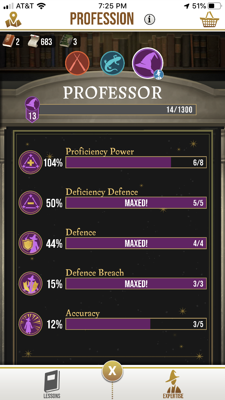 I wanted to thank every one here for the advise, suggestions, and tips. Because of the help from this professors thread I understand better there are no wrong choices, with time we will all fill out our skill trees. I tend to over think specially when I was faced with so many options. Originally it seemed more stamina would be better. Because of this thread I chose to go for proficiency power. Proficiency charm is now 5/8 (only one not maxed yet) Dementors lession for 32 scrolls and 21 RBS to 150%power! I have 13 RBS now.