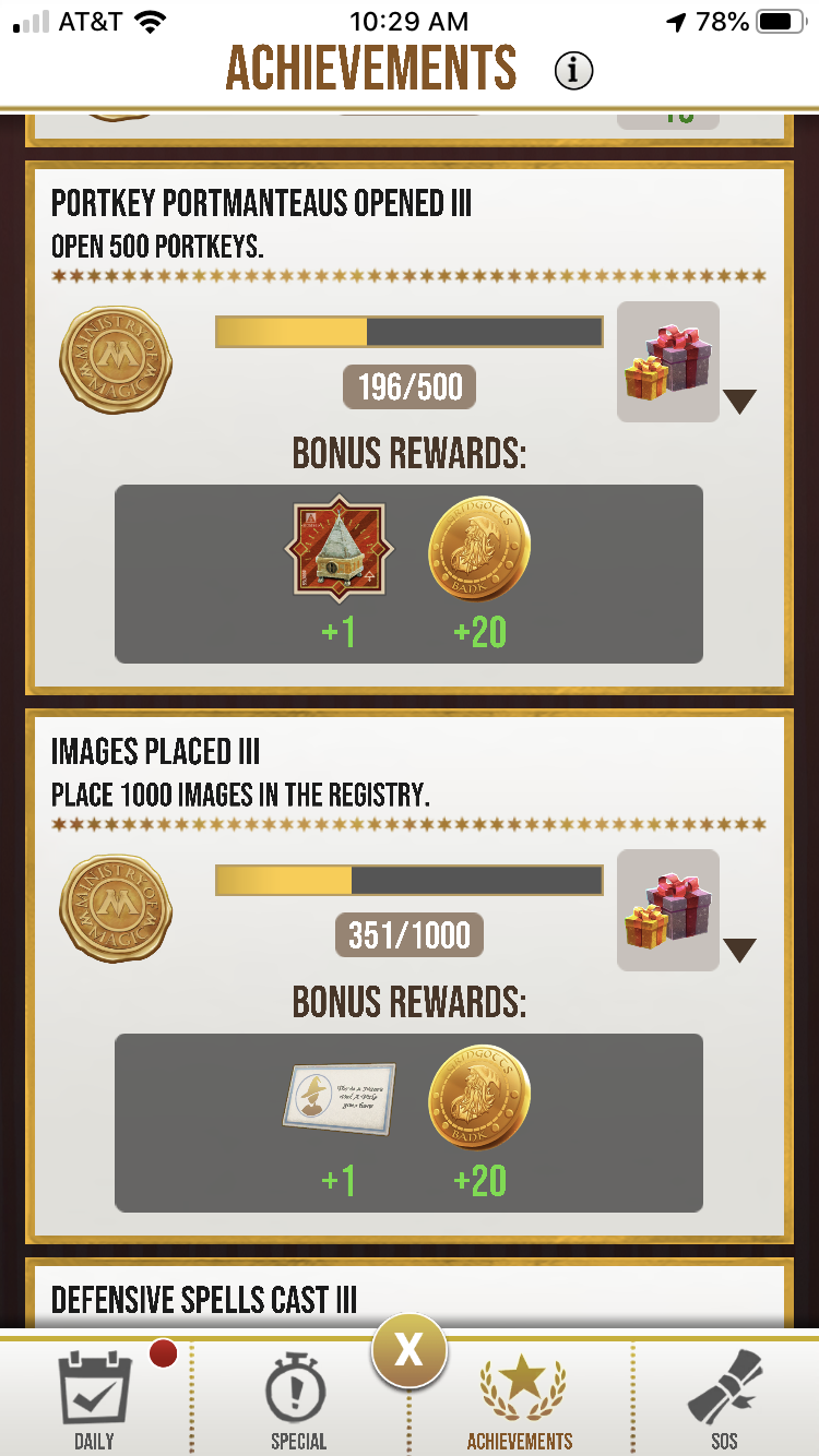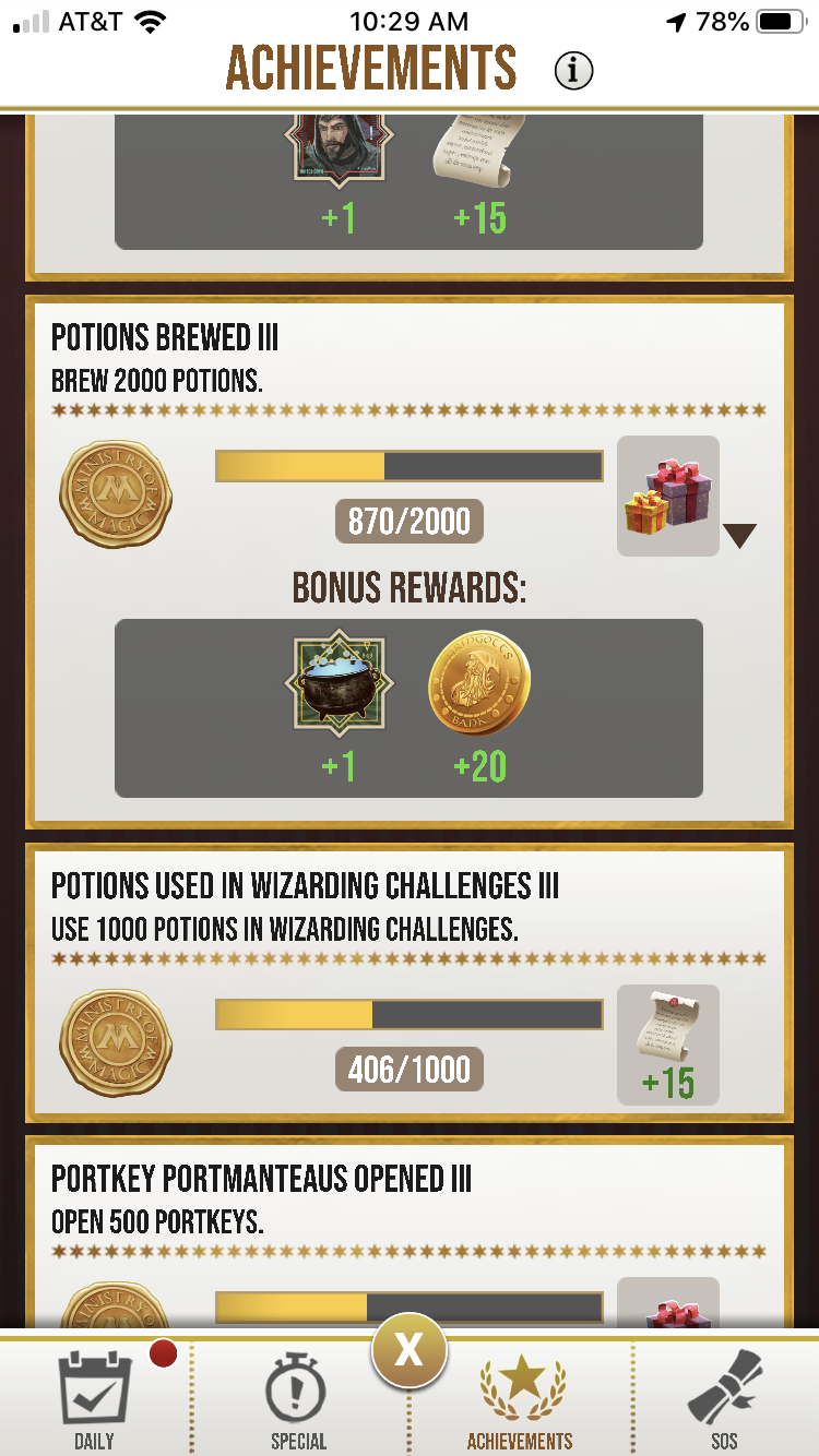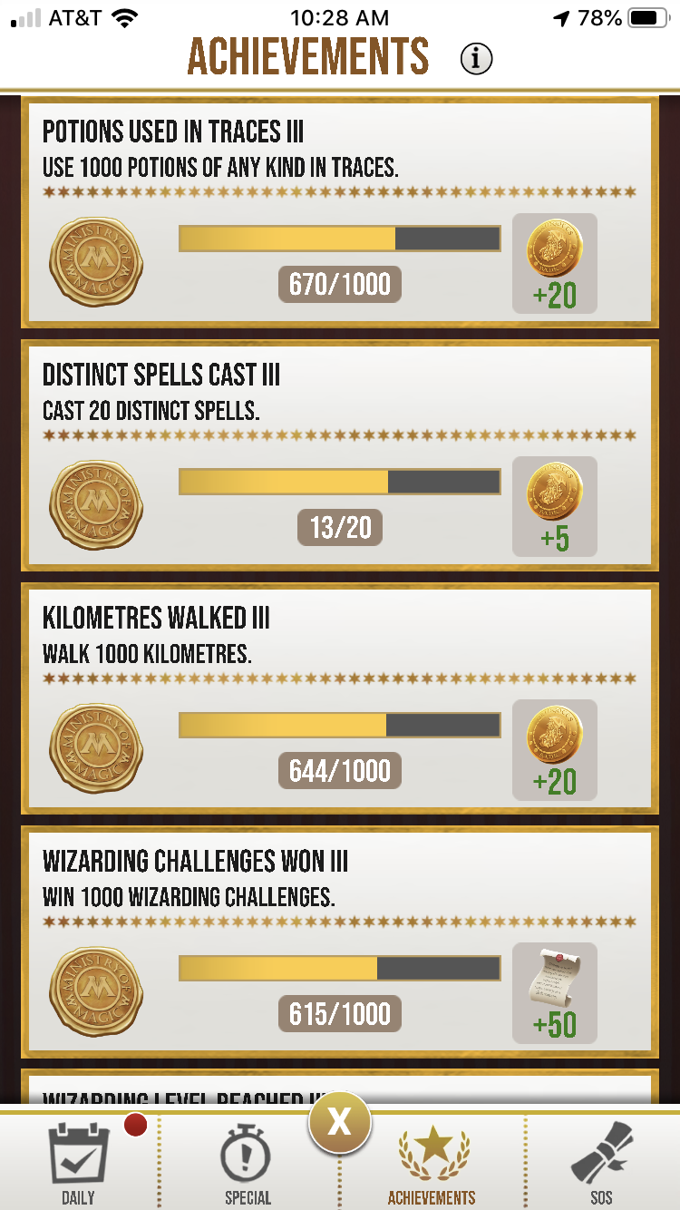 i find most of the remaining achievements to have way too high a target with too paltry a reward to justify actually **** away for the reward. really, why grind for just the typical reward of 20 gold coins when completing two daily assignments will get you to same 20 gold coins in just two days ... or you can just wait a week or less to get at least that many coins from the daily treasure??