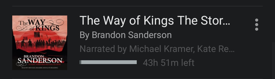 @HPWULola The Way of Kings by Brandon Sanderson. Easily one of my favorite authors. I highly recommend giving it a shot!