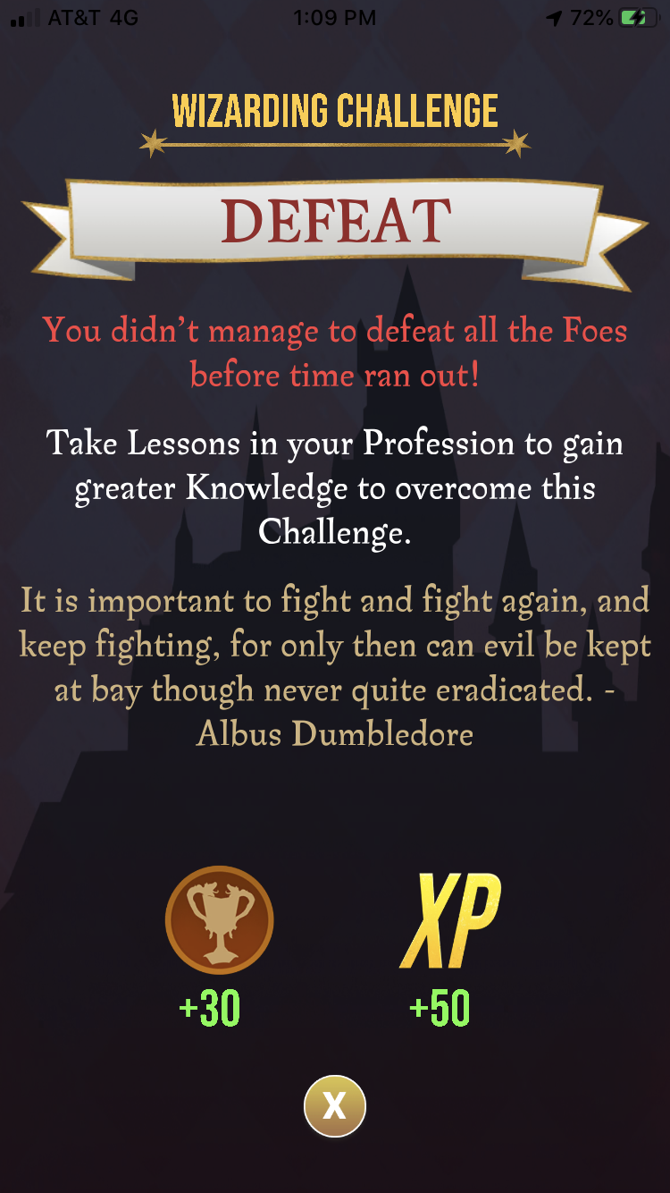 This happens especially in higher chambers and when I’ve already put in too much potions (a LOT of healing potions as I am an Auror and exstimulos to outrun the clock) yet I lose. All those potions and spell energy gone to waste. This is extremely frustrating. I had good internet service and a steady GPS. So I don’t know why this is happening.