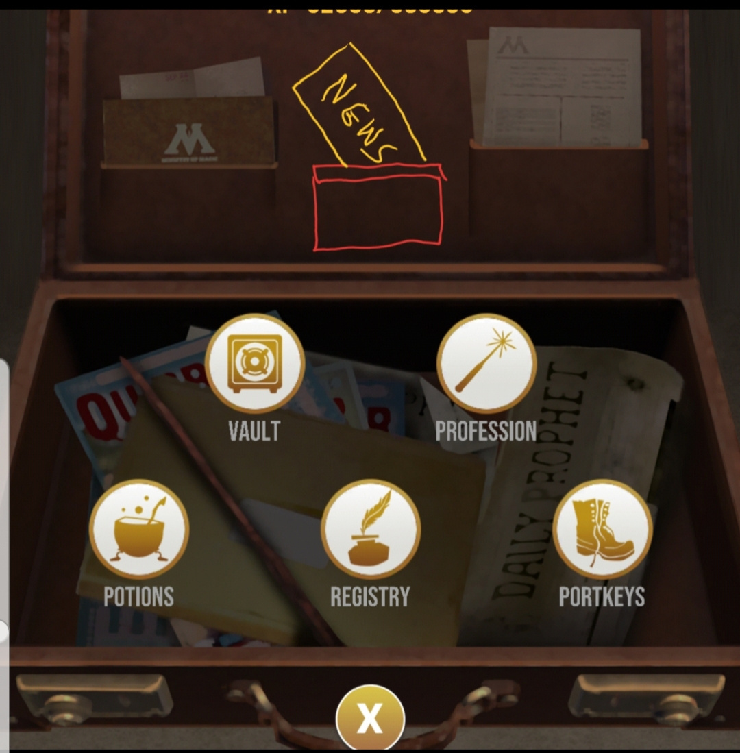 But ive definitely gotta agree on how it's disappointing that the newspaper is so static. I think it would have been more fun & appropriate to the idea of the case that we click on the icon in a middle pocket for it to come out & then tuck back in between the ministry documents as I've VERY crudely drawn here- apologies but it serves the idea I'm meaning lol