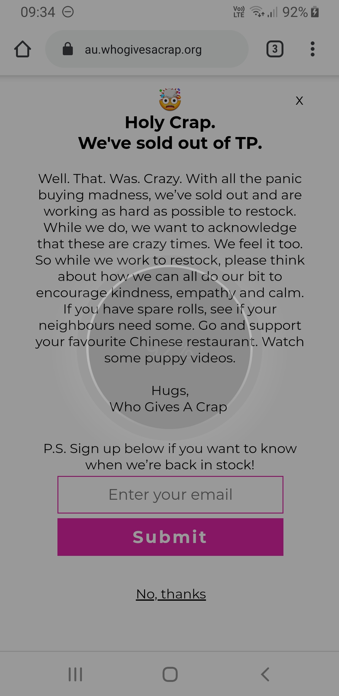Even an online retailer that only sells toilet paper has run out: