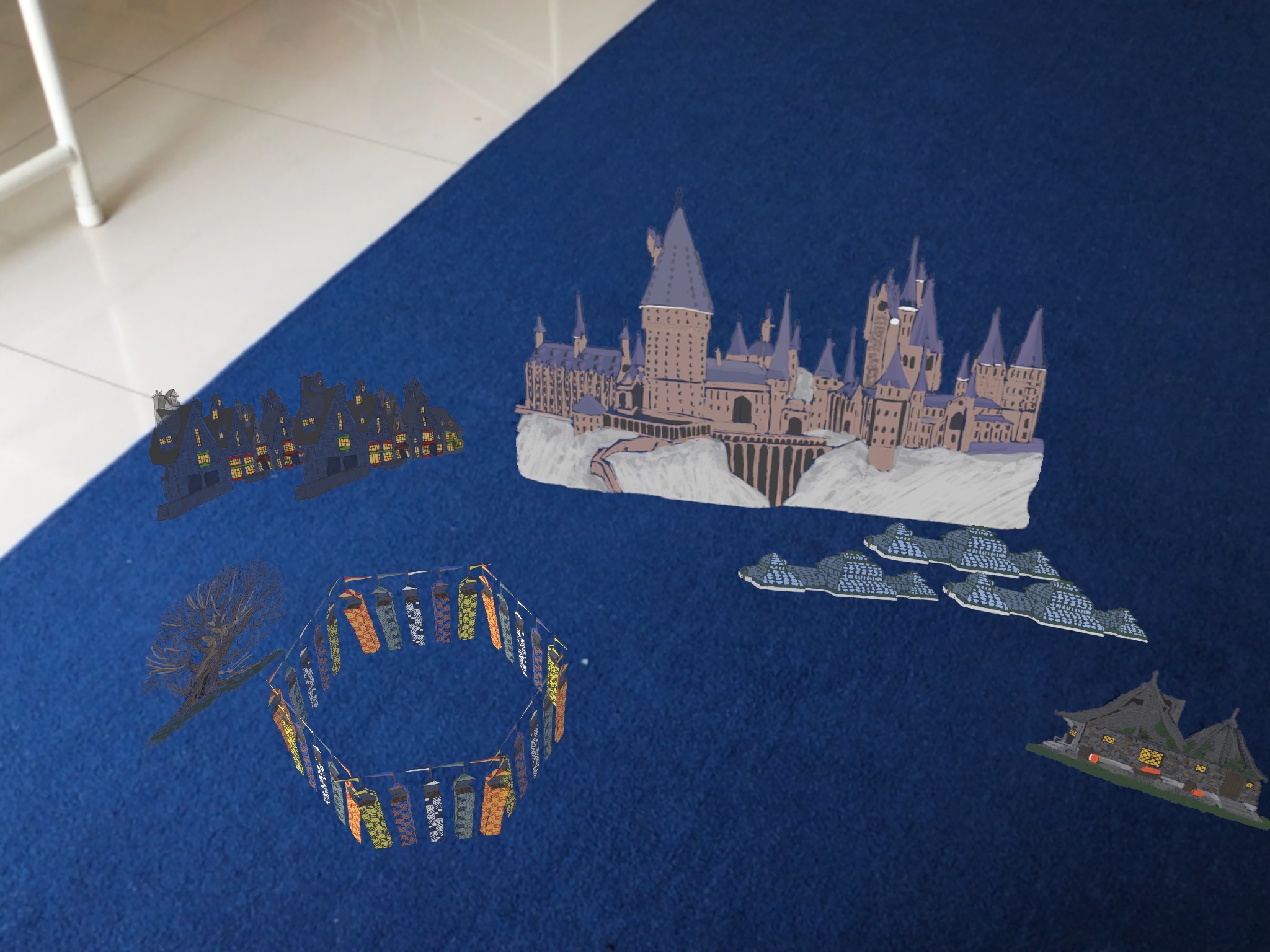 A bit off topic but I mentioned yesterday that I ran a training on doing simple AR creation with kids. It is nowhere near HPWU level, but I wanted to share the Hogwarts themed objects I created and we used for the training. Hopefully, you can see a simple quidditch pitch (just the stands in this version), Hogsmeade, Hagrid's hut, some greenhouses, the whomping willow and Hogwarts itself.