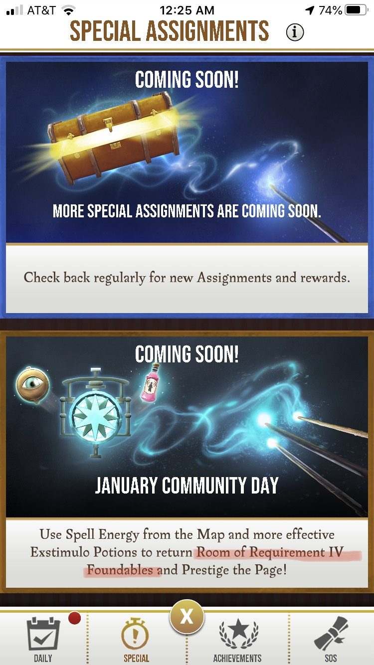 On the one hand, the Coming Soon graphic in the special assignments area indicates that we will have the opportunity to prestige the Room of Requirements IV page of the WWW tab of the foundables registry (but not any other pages).
