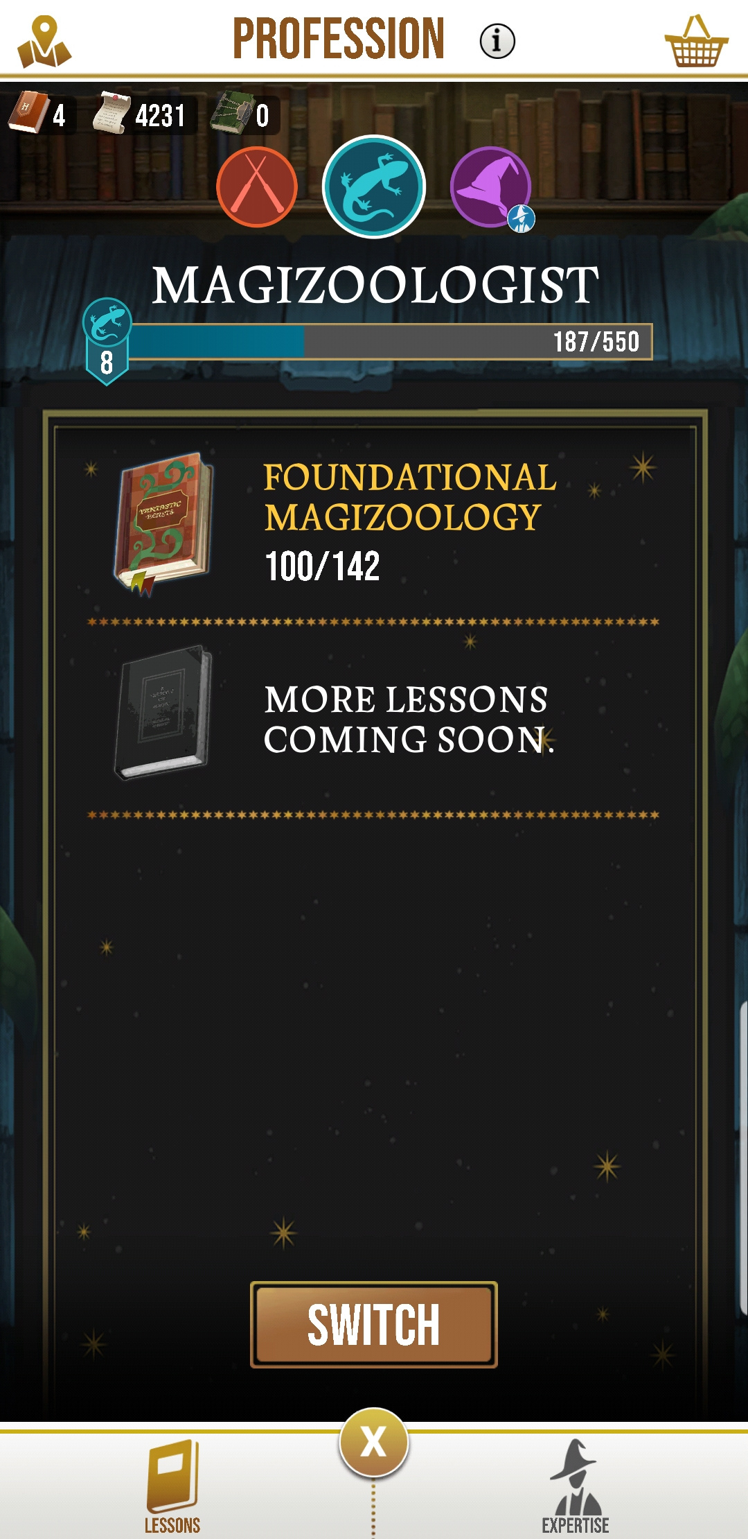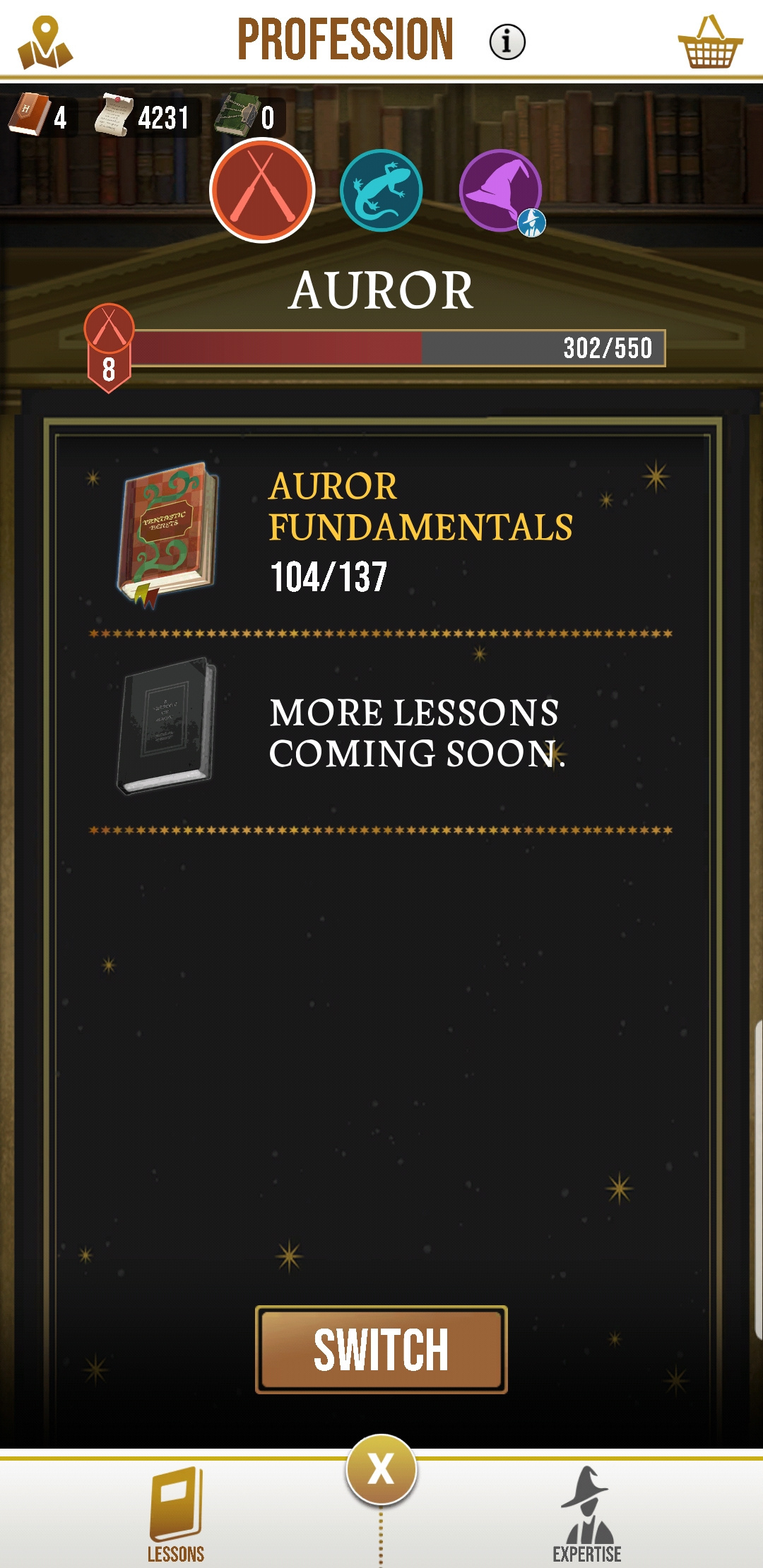 Aurors and magizoologists need more red books, so they are gated by the ever increasing difficulty curve of leveling up their challenge rank. You get 2 red books for each challenge level gained, but every level requires more CXP than the last all the way up to level 150, so it can become kind of a slog as you approach the end of your lesson plan. On the other hand, a determined player can still spend lots of time and runestones at a fortress each day and make steady progress towards more red books without having to wait for another event.