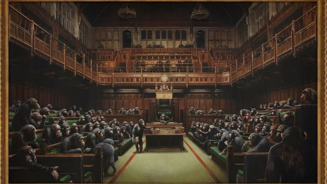 So this is usually where @Acumen would jump in with something witty and apropos, but alas, I am not he and nowhere near his master of wit. instead I present you with Banksy's version of the UK Parliament, which as someone else pointed out to me, this is beginning to look a lot like that. Maybe you won't be as amused as I am, but hey, I'm trying to diffuse the situation here. Work with me okay?