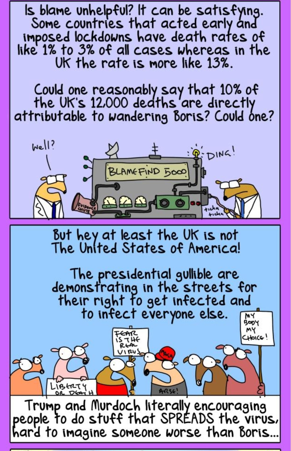 Meanwhile I'll share a little snippet of a first dog on the moon's cartoons. He's an Aussie but written from the UK perspective. The following picture is about a certain nameless orange leader being a pirate in regards to the worldwide distribution of PPE.