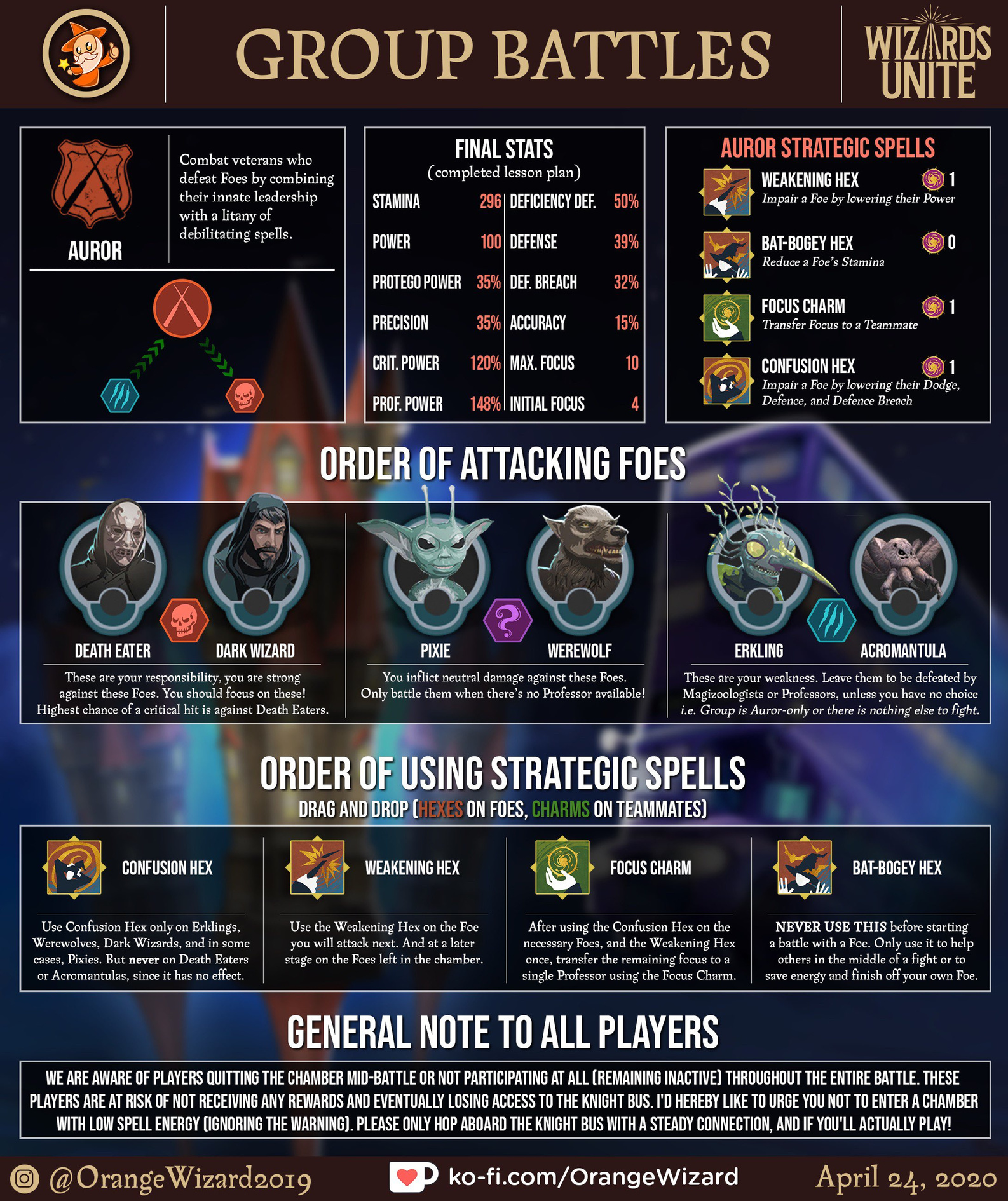 We can totally see you professors hexing though @Dextraone et al! I had some great high level battles where I was inundated with focus and got to hang back for a round boosting everyone, before wading in. I think the complaint is simply towards people who enter a lobby and subsequently walk away until the fight is finished, not towards low to medium level, or inexperienced players... :) 💜