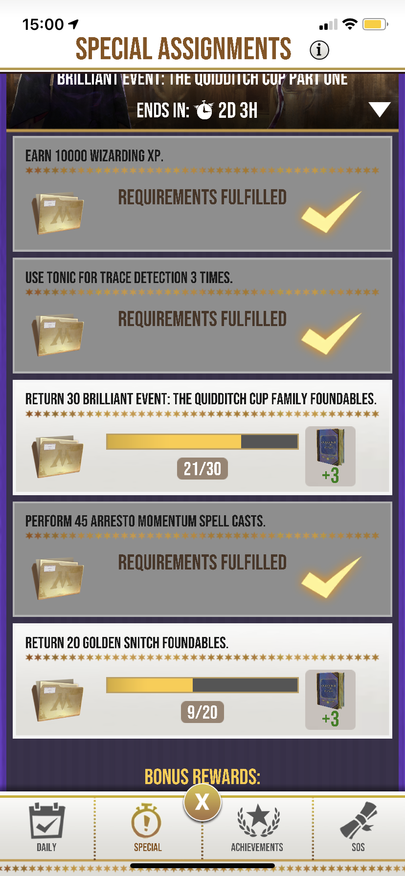 take the quidditch cup part 1 - I’m currently completing the bonus assignment and all the rewards are quidditch books- like seriously? Okay if 1 reward was that fair enough but all 5?? Can we be a bit more imaginative? All game players are in need of higher confoundables or in desperate need of more spell books, am I right??