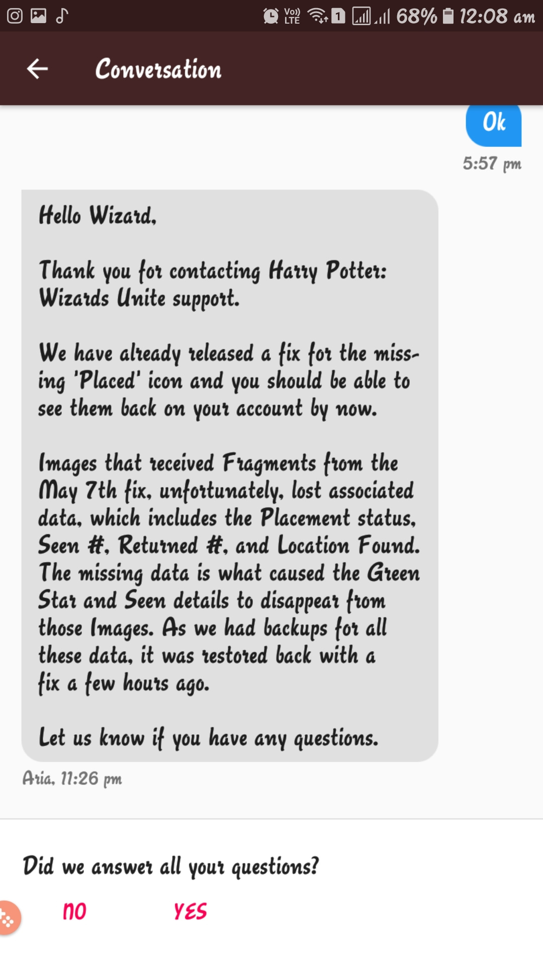 Do I have to be added to a list of people that are still having issues? I didn’t get fragments returned and my placed images are no longer placed. I have stopped playing because I don’t want to add more complications, but I don’t want to miss out on the event this weekend.