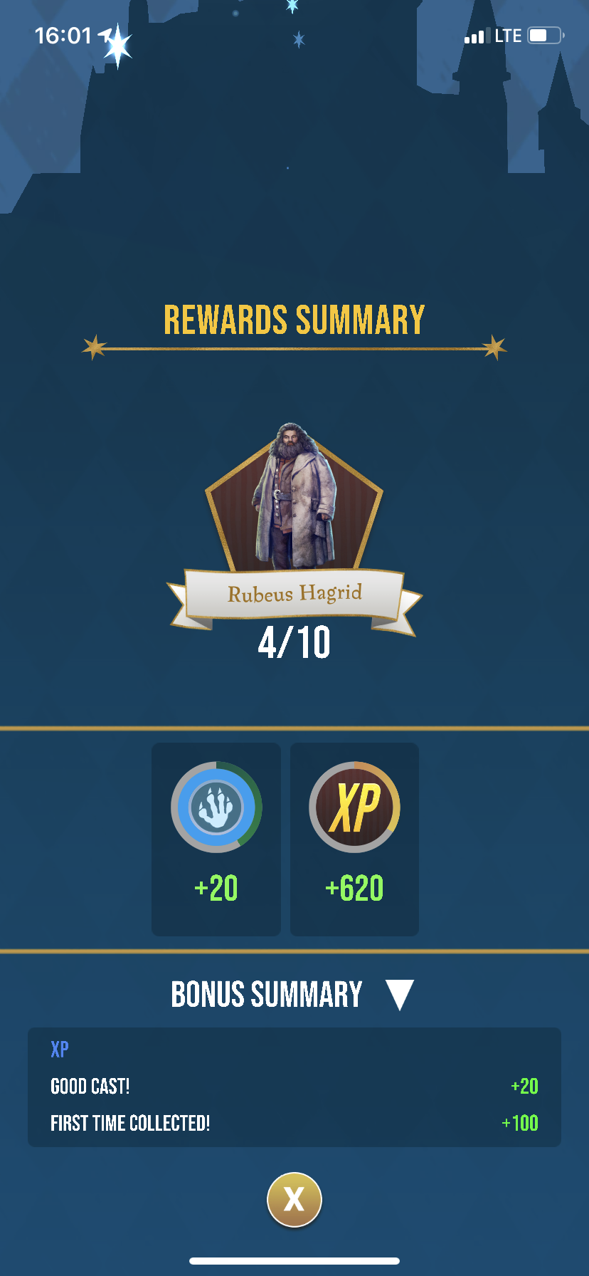 @Blinker73 For common foundables, he catches and places again on gold. For non-gold, if he's close to prestige, he'll wait and not re-place. If far from prestige, he usually will re-place for the rewards. For RARE foundables, different approach. Generally wait for prestige on everything until gold. Hence his 20 fawkes and 13 sorting hats. He actually had 20 hats as well, but then a portkey screwed that up and took him to 13. Then he got the add'l 33 added on. Since he was given another 21 dumbledore portraits, he's even closer now to prestige than he was before, so it worked out well for him. He's not worried about having full counts on each item, he likes the ability to re-place items and keep catching. I see what you're saying tho, having those lower numbers were in his favor with the "fix." He was able to go back through his registry and get a bunch of rewards all over again. Soooo many red books and runestones.