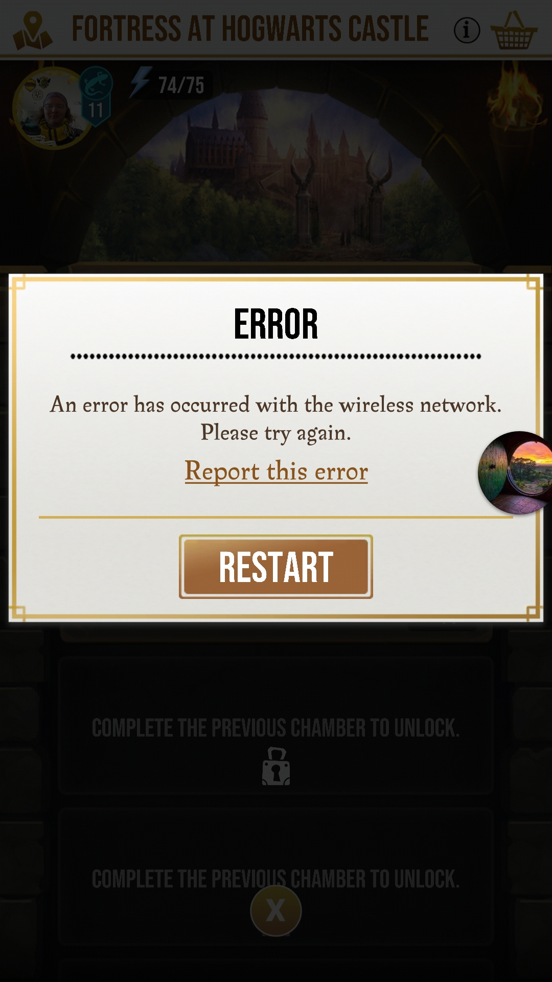 Upon entering Wizarding Fortresses by Night Bus or proximity this notice always arises. No matter how many occasions in which I darecto restart including the previous few updates, it remains. It allows collecting foundables, portmanteaus and all other game aspects, I have only ever been in one challenge chamber.