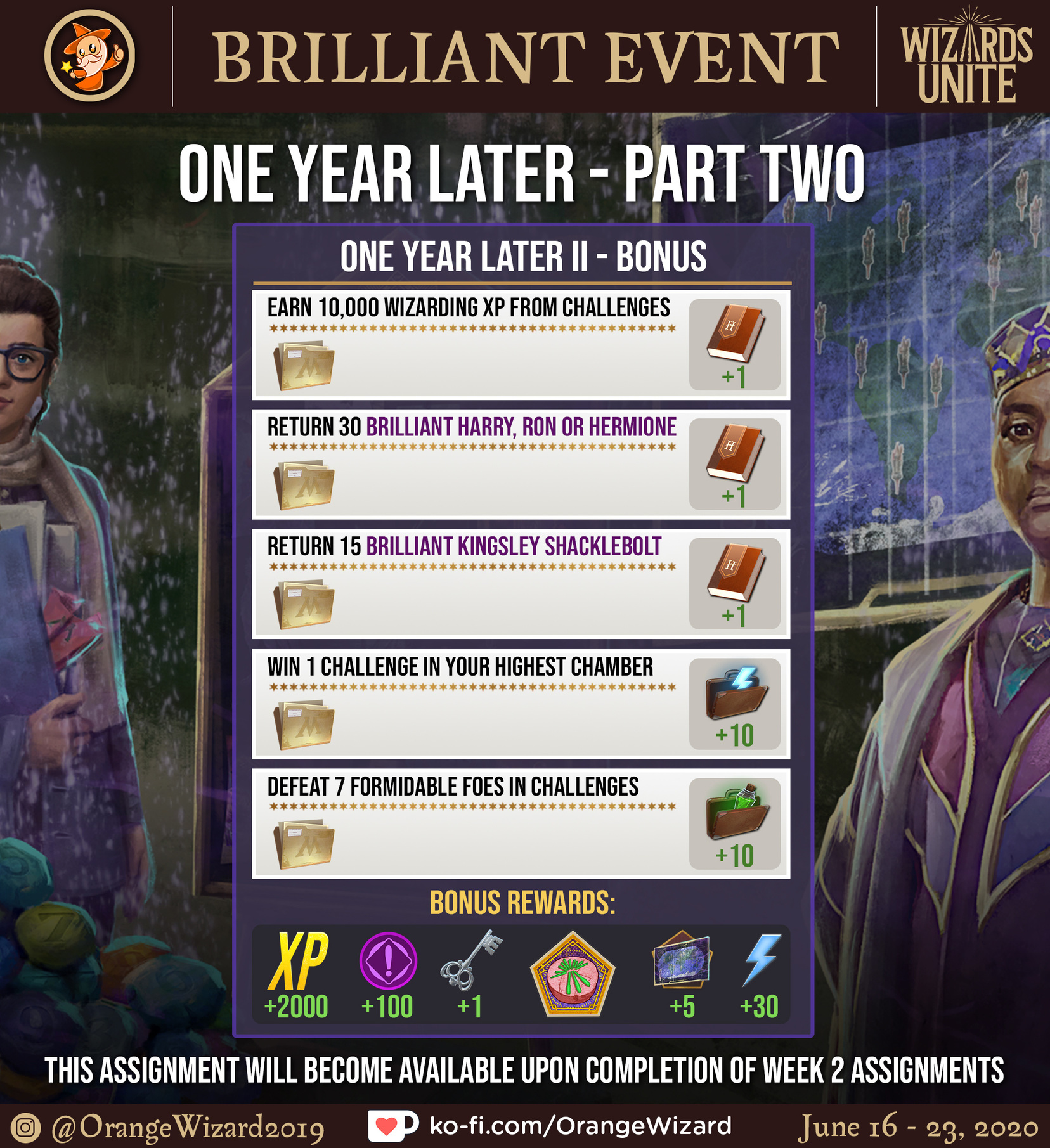There will be a Bonus Assignments that follow the main tasks, best of luck! Remember to pick up your complimentary store pack from Diagon Alley 🎁