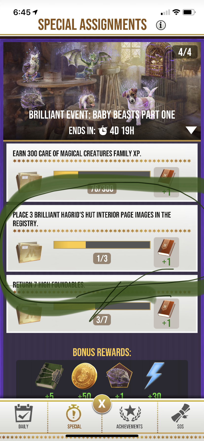 @CleverCapricorn no you do not. you need to place 3 images on the EVENT page, which is called hagrids hut interior, so place the brilliant baby beasts