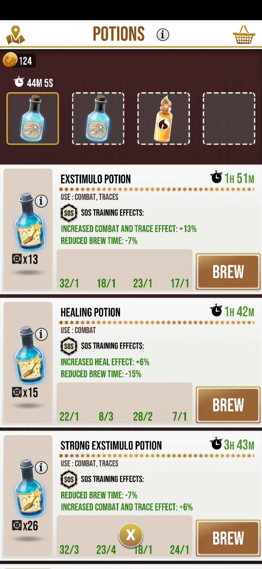 - Click [+] in empty slot to brew new potion - fails.