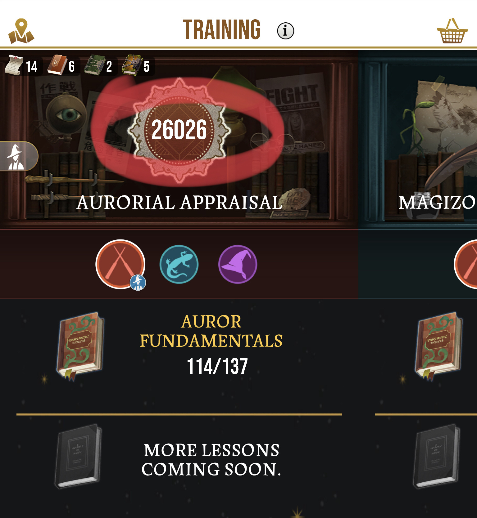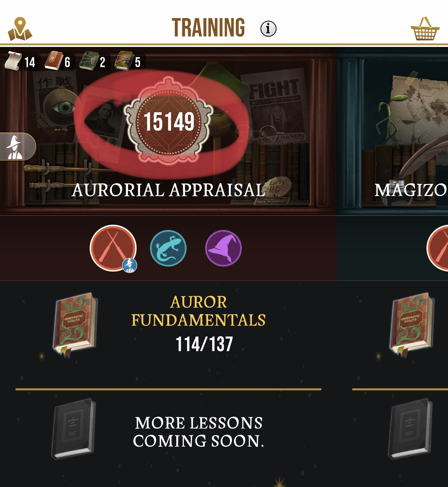 I have been playing since the beginning, and though my professions may have been lacking, I didn't think they were that bad (Auror-12, almost 13; Magizoologist-high 13; Professor-high 13, maybe low 14). However, when they tweaked the system to show the new Combat Training Appraisals, I found I was severely lacking, compared to others (something like: Auror-30268; Magizooligist-36278; Professor-33076). While I was seeing many with numbers over 60000, and others over 90000, in the Wizarding Challenges, I thought, “No biggie. I’ll work on that”.