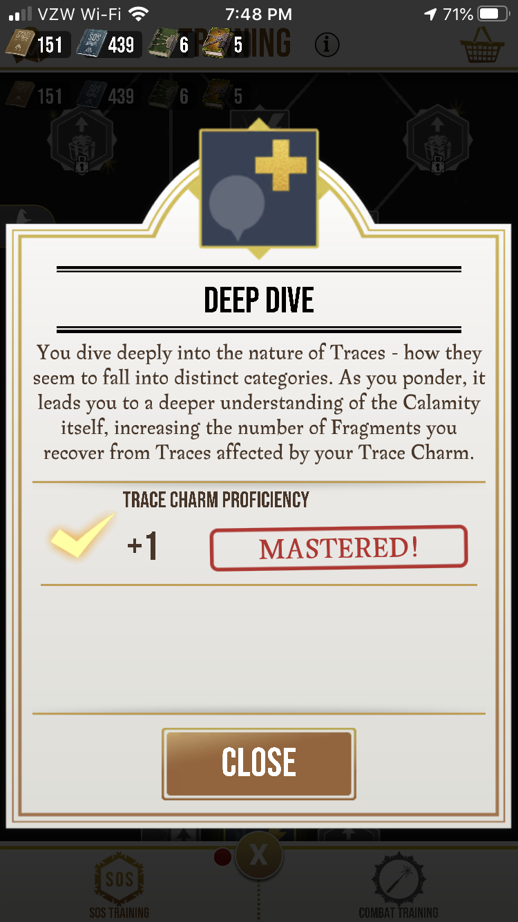 I invested in "Mind Freak", "Foretelling Foundables" and "Deep Dive" and should receive a total of 3 fragments per trace, but it is registering only a total of 2. Before returning the trace below of Tom Riddle, I had 7/10.