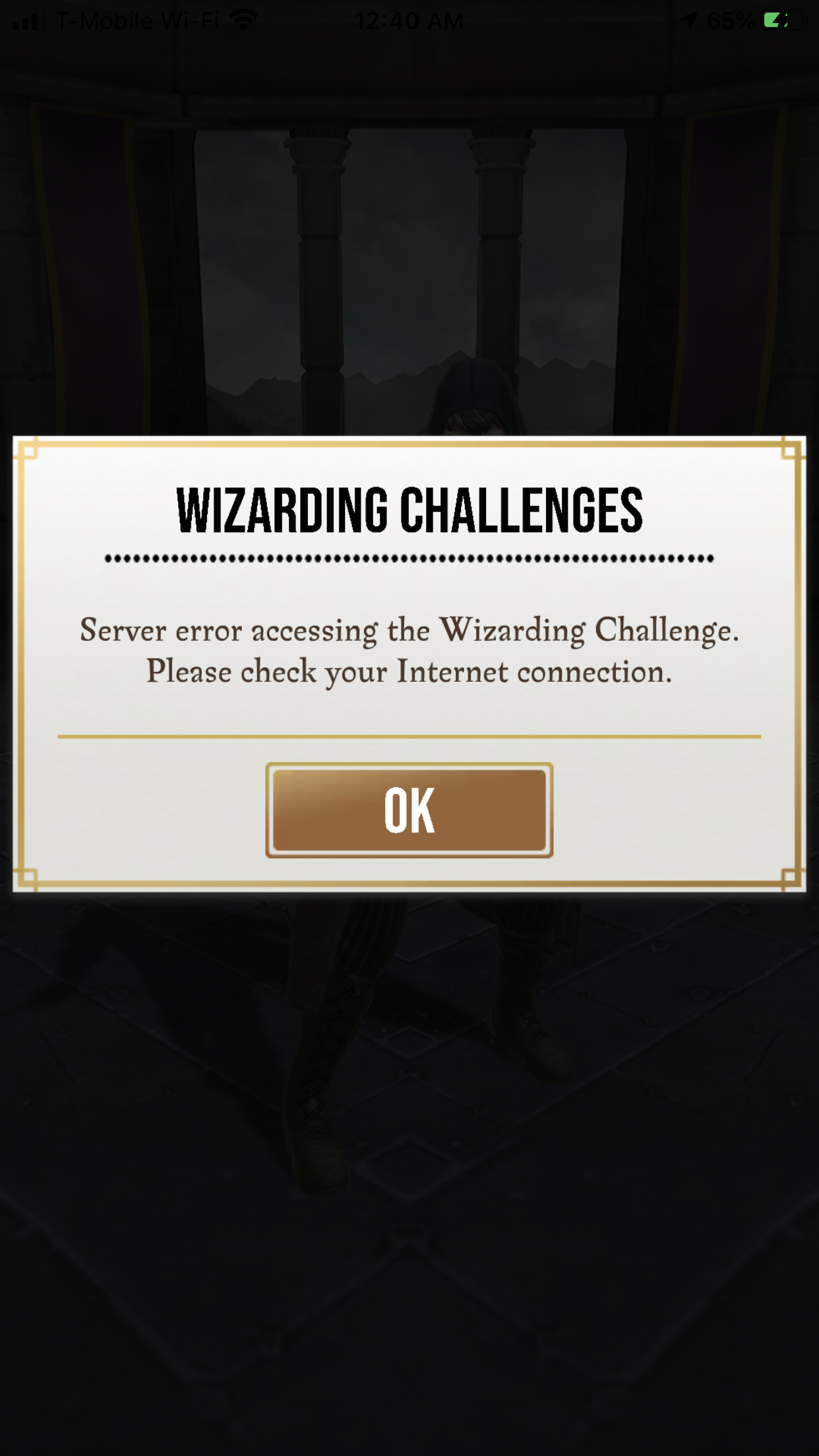 I have tried all of the things that were in the troubleshooting threads but they didn’t help. I have an iPhone 8 Plus running 13.5.1, I have the latest update of the app, and have downloaded all of the content. I’m mainly having issues with wizarding towers through the knight bus but haven’t been out to other towers since the latest updates to the app. I just tried to enter a wizard tower through the knight bus and as soon as the first foe appeared on screen the pop up came up and said the same warning I posted last night (please see picture above). Then when the app reloads if I go to the knight bus wizard challenges the game freezes and I cannot do anything. Can’t scroll, can’t select a wizard tower, can’t exit out of the knight bus, have to exit out of the app completely. After a few hours of frustration it seems to let me back into the wizard towers to select a challenge but then just does the same thing and gives me the same error and resets and then when I get back into the knight bus wizard tower screen it freezes again. Been like that for about 24 hours. Seems to be the exact same issue the original posters were having yesterday that got fixed pretty quickly. I was also having issues with the new trace charm (please see other picture above) but it eventually let me use the charm.