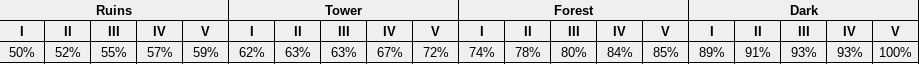 @Zuzanna93 it runs from 50% chance in ruins 1, up to 100% in dark 5