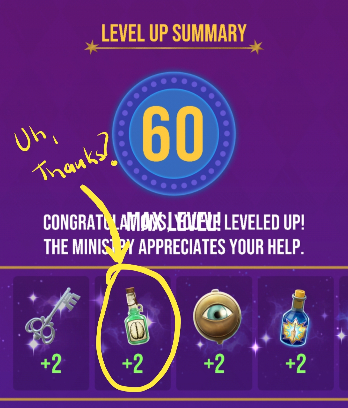 Seriously, there should be a much better celebration and “thanks” for achieving the highest level in the game!