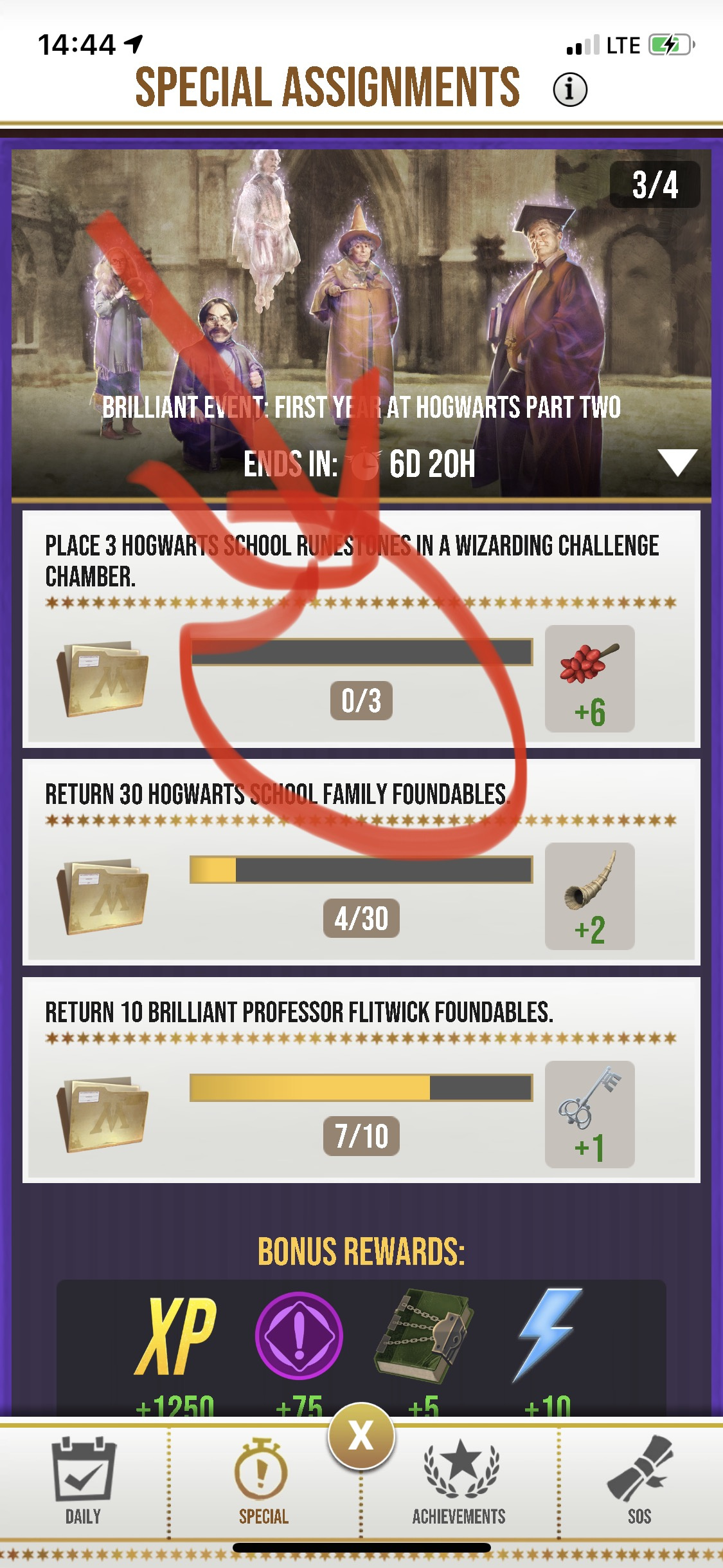 Part 2, challenge 3/4 won’t register/count when I place a Hogwarts runestone In wizarding challenges. I’ve tried both regular and brilliant event runestones without success.