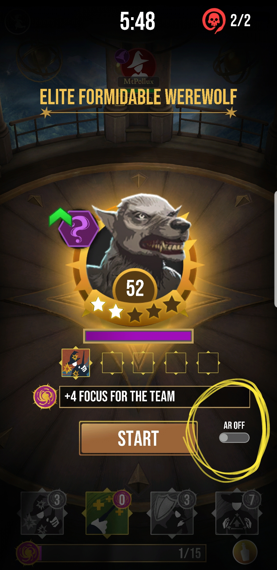 Look for the AR switch on this screen, once you've selected an enemy in the fortress but before you start fighting.