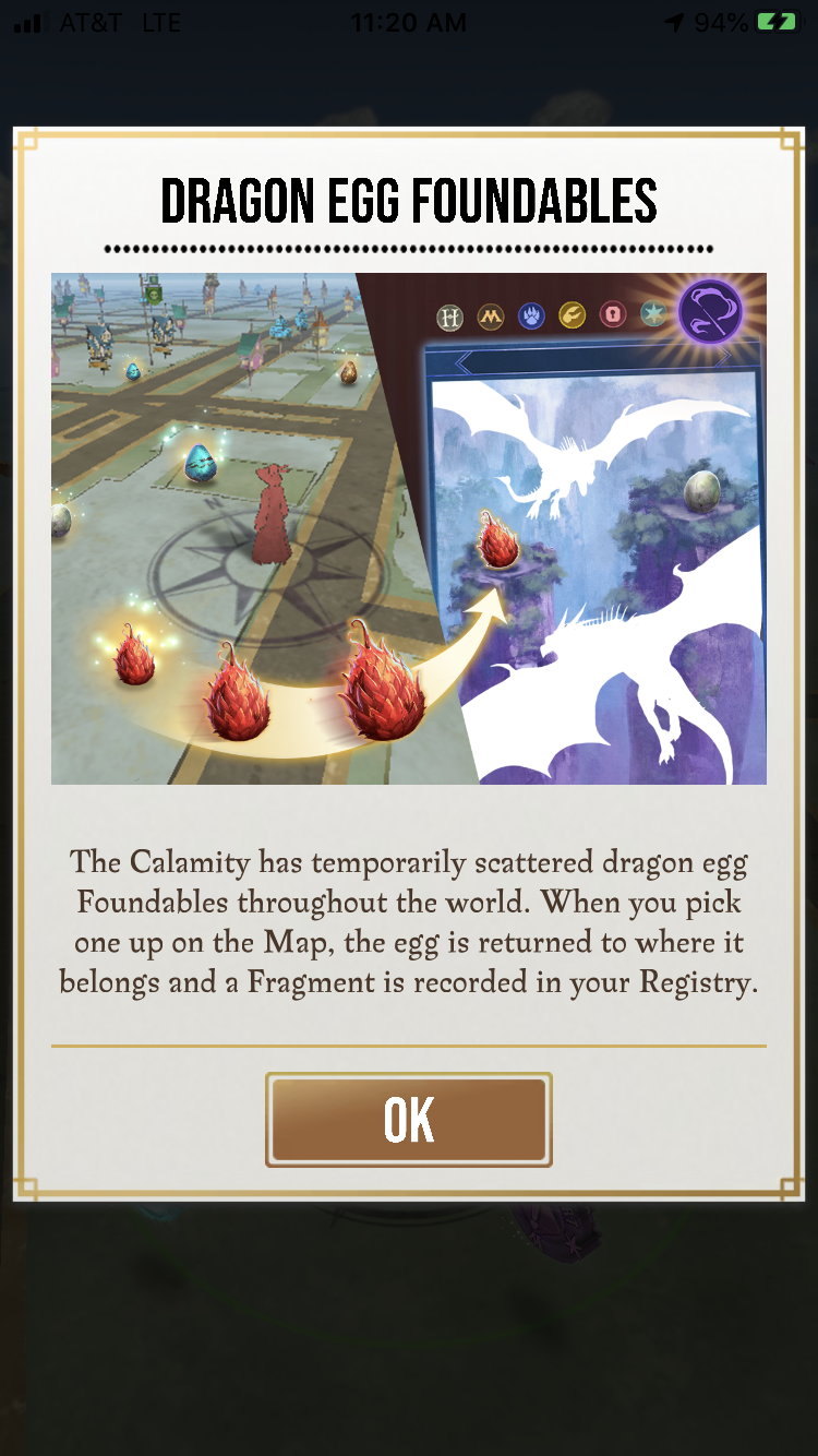 saw this notice and two dragon eggs, one for peruvian vipertooth and one for common welsh green, on the ground (map) during first 30 minutes of the event today — before i was able to prestige the registry page — so unfortunately those first 2 fragments fid not count for me. that was expected. unfortunately, da missus and i fid not encounter another dragon egg on the ground (map) for the rest of the day. that was unexpected. sure hope for better luck thursday finding dragon eggs on the ground (map).
