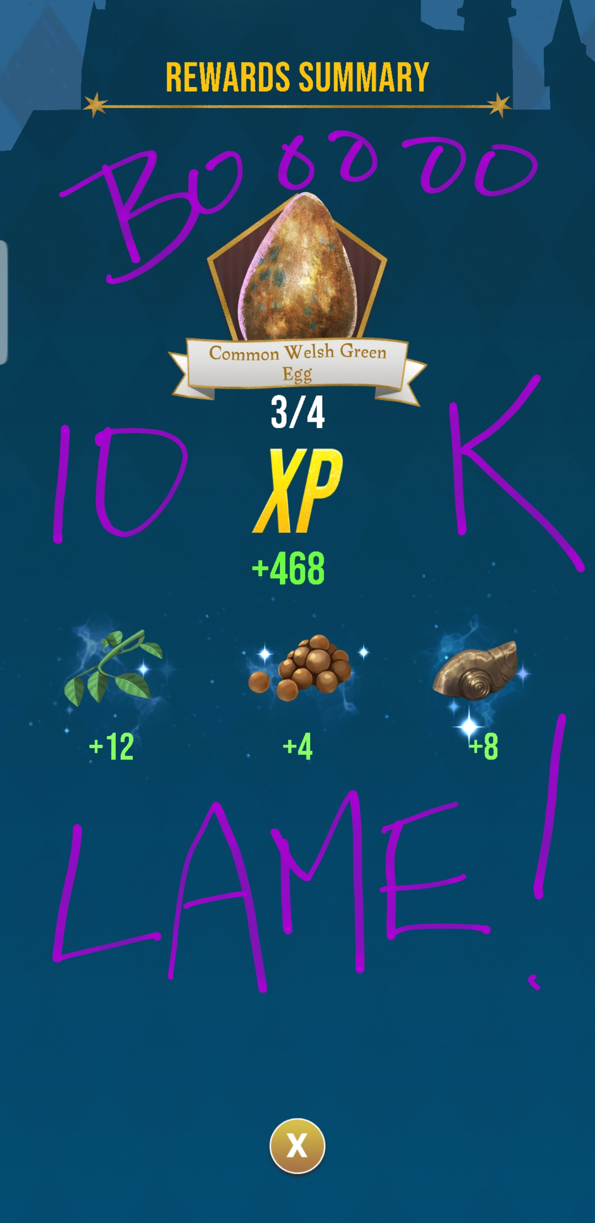 @MrSciGuy - i beg to differ. at least you got a boggart cabinet fragment that counted. worse still is (was) opening a 10k portkey and getting a fragment for the dark mark (which i already placed its image and do not even care about because it is a challenge fragment rather than a family foundable fragment) plus mundane ingredients and piddling SE. i was so disgusted that i did not even bother taking a screenshot of the rewards page.
