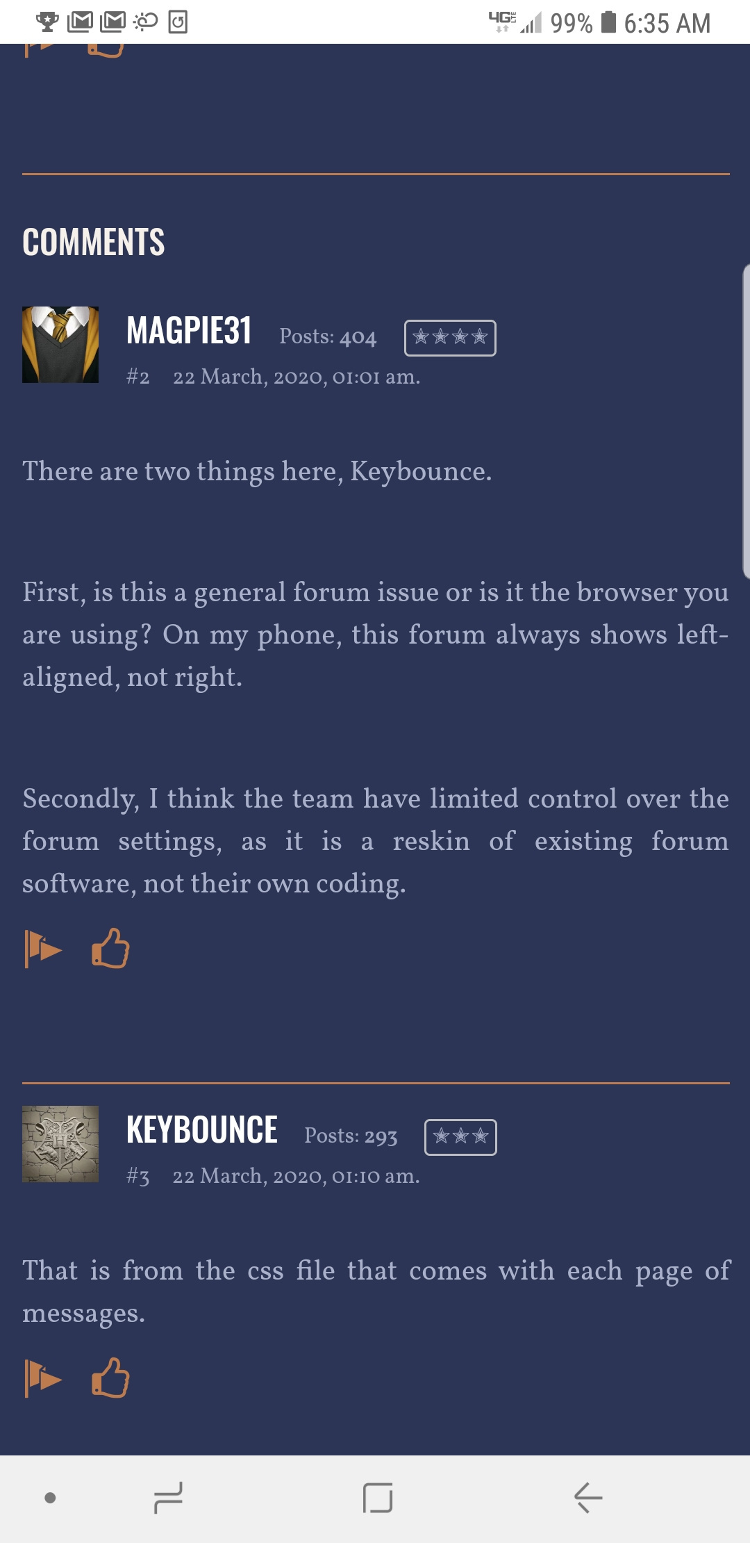 Secondly, I think the team have limited control over the forum settings, as it is a reskin of existing forum software, not their own coding.
