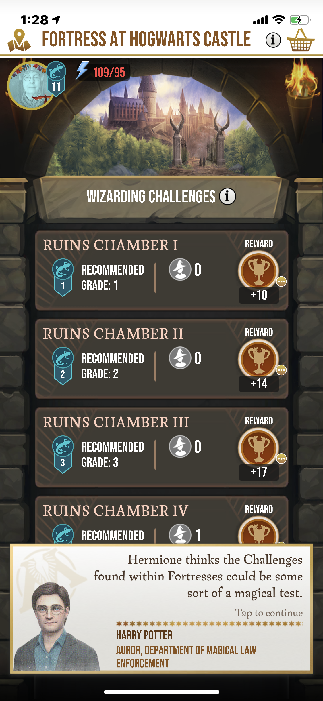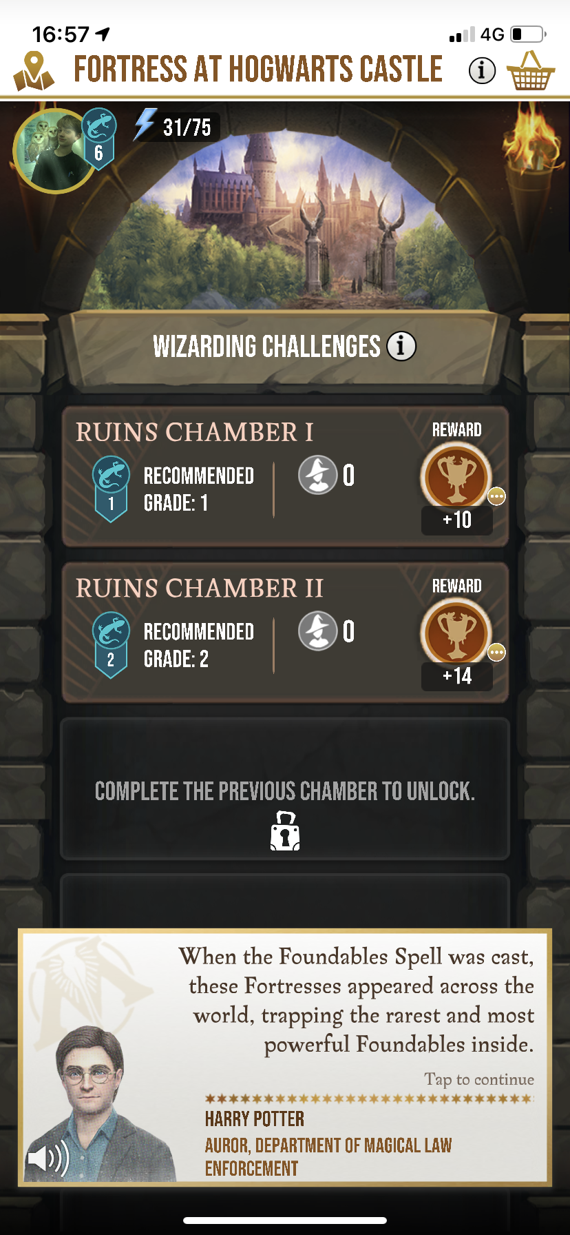 Hi @nurselz! I've merged your post with a related thread and applied a fix on your account. You should be able to enter the Fortress and take part in Wizarding Challenges. Try it out and let me know how it goes!