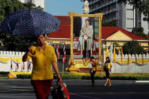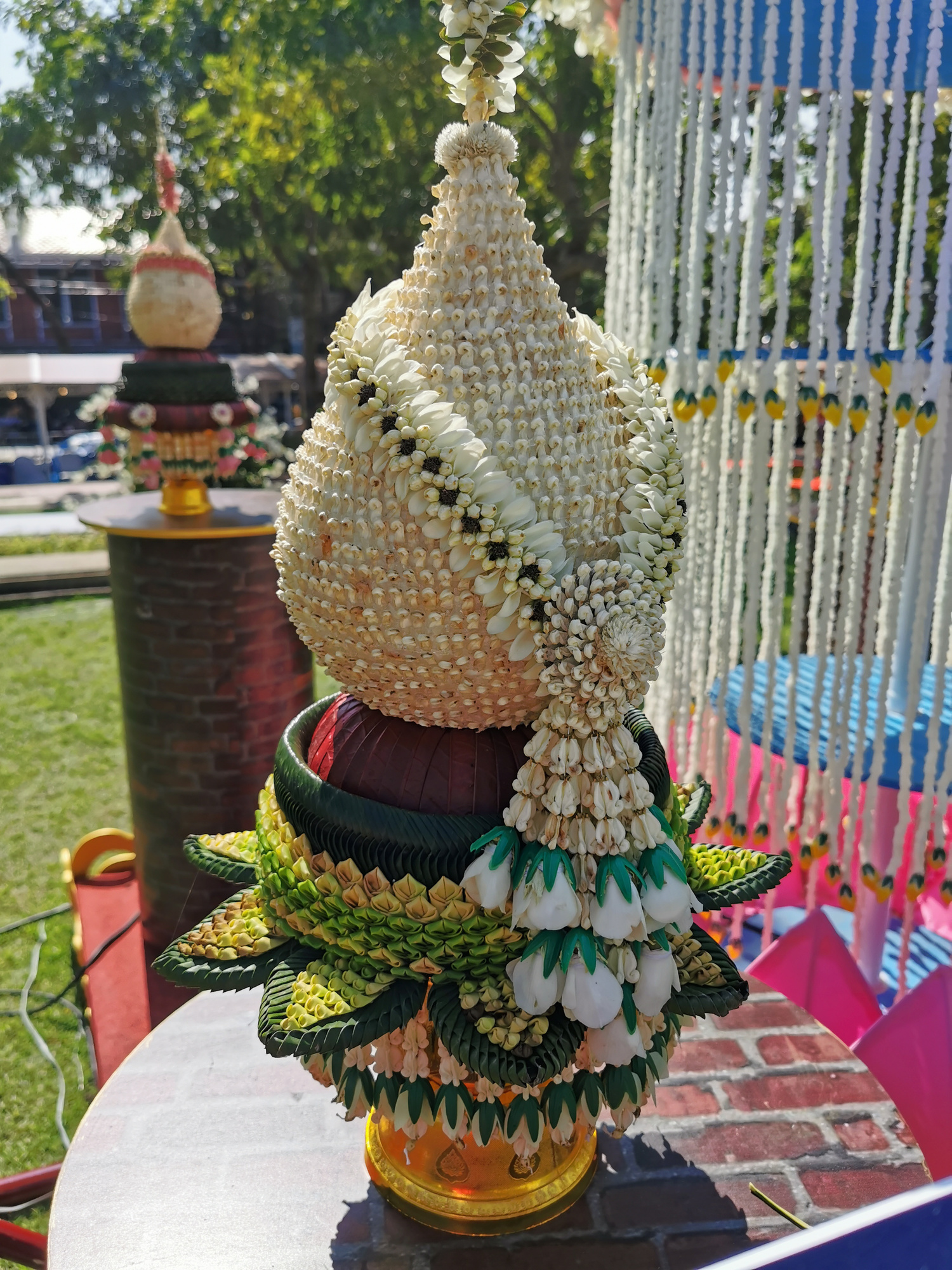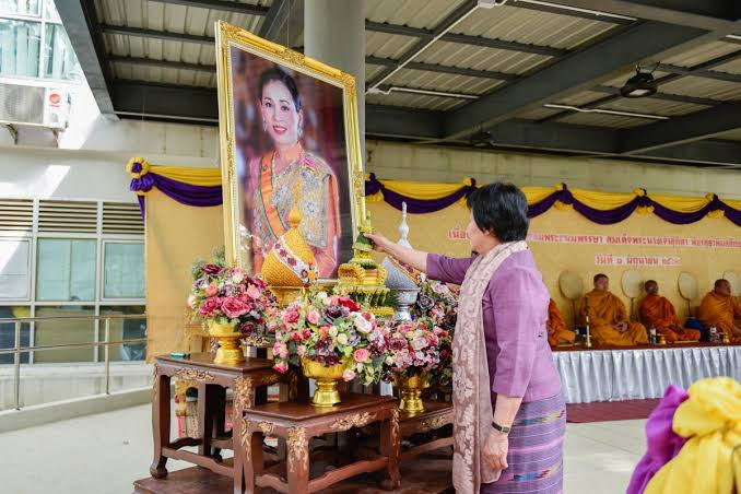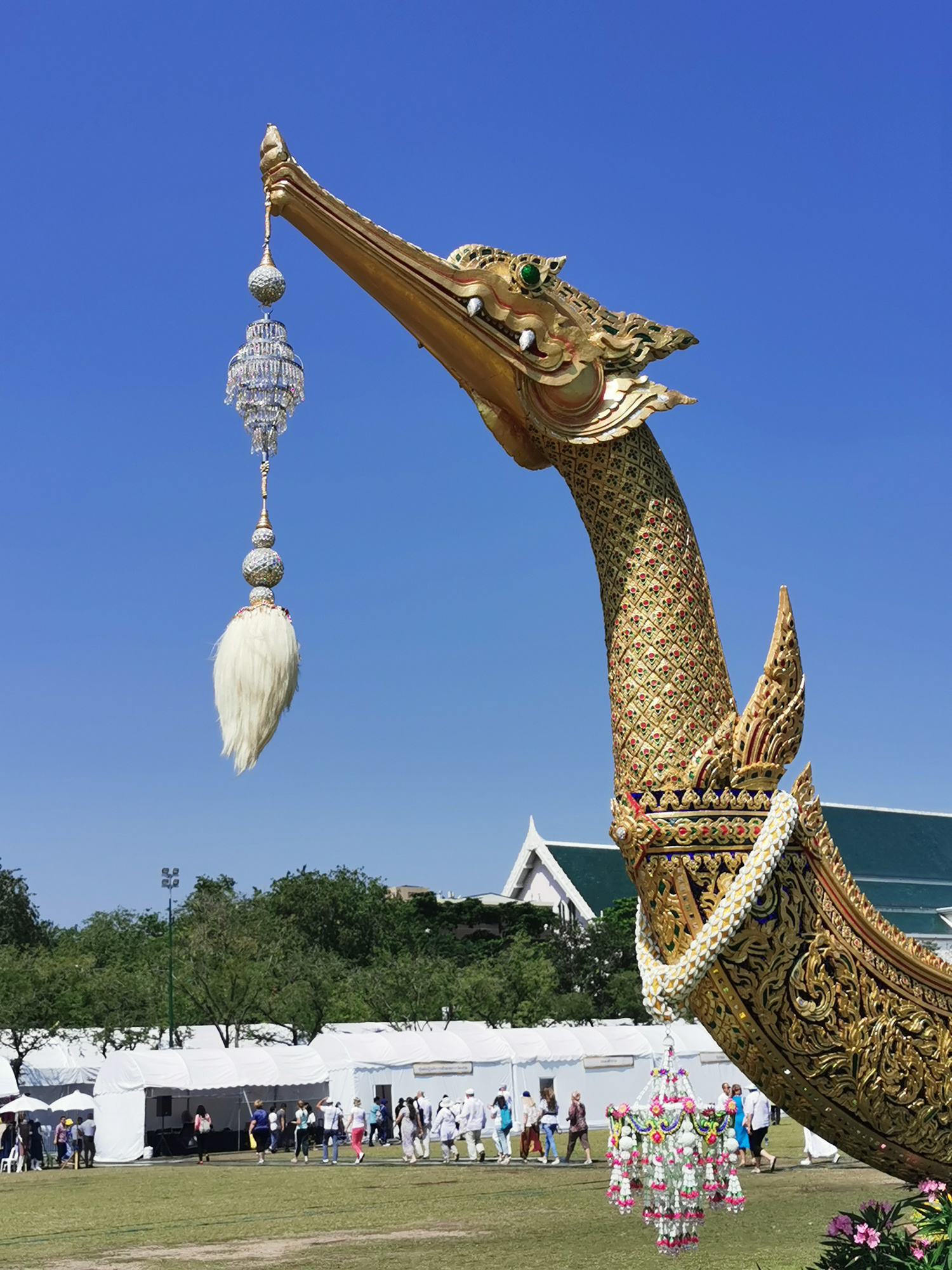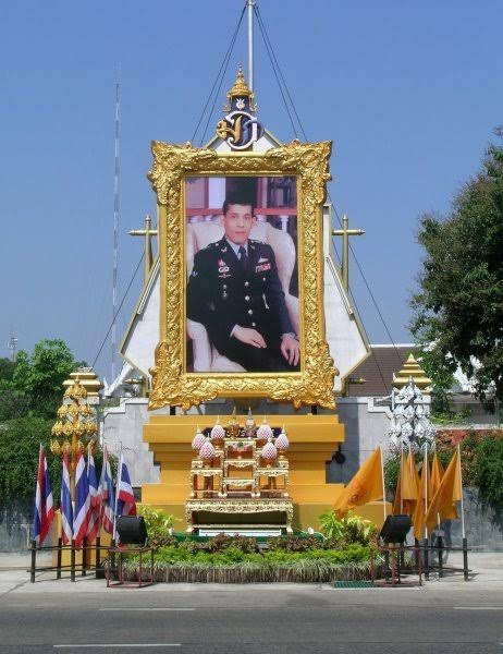 You might notice beautiful fabric draped in a couple of the photos above (which I "borrowed", as I have become a little nonchalent about these portraits and don't photograph them!). There are different colours, usually draped alongside white. In Thailand, all days of the week have a corresponding lucky colour. The King's flag is yellow, because he was born on a Monday (as was the late King Rama IX). Queen Suthida (the current quren consort) was born on a Saturday, so her colour is purple, the same as the King's sister, Princess Sirindhorn. On the photos, you will see that banners for Queen Suthida are yellow and purple - yellow to show she is the wife of the king, and purple for her. Queen Sirikit, the King's mother, has blue as her colour. That is Friday.
