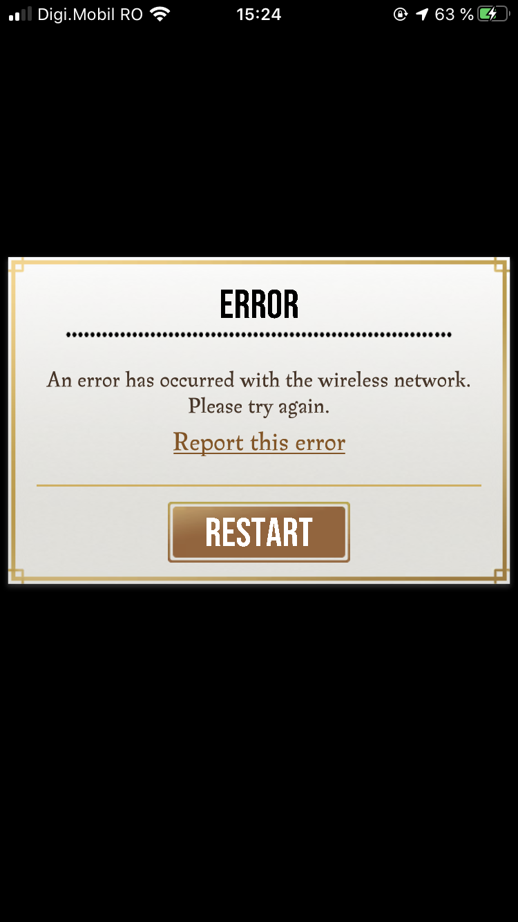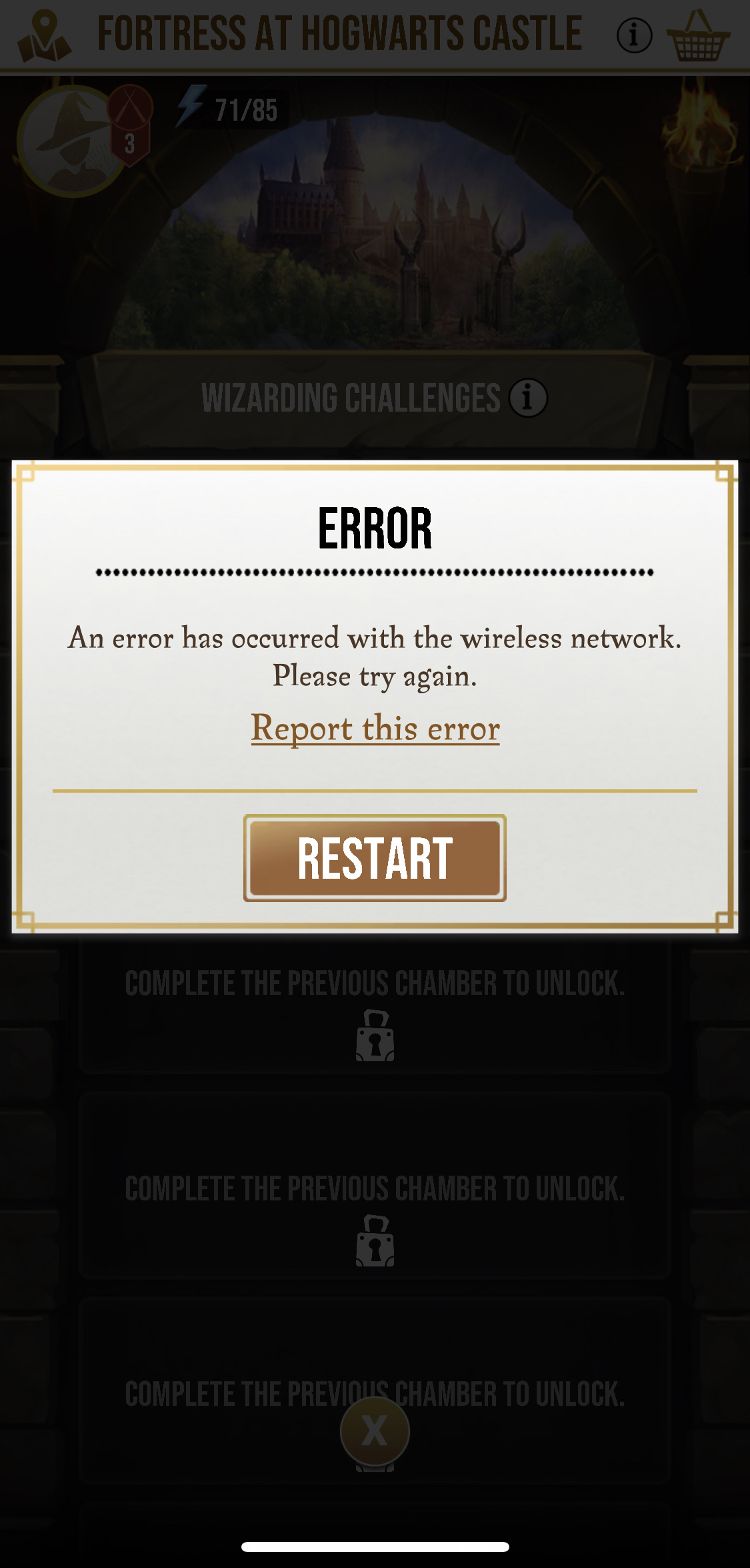 Every time i try to enter a fortress chalange or i try to enter the night bus chalange the game displays the folowing error and pushes me to restart the game: An error has occurred with the wireless network. Please try again.