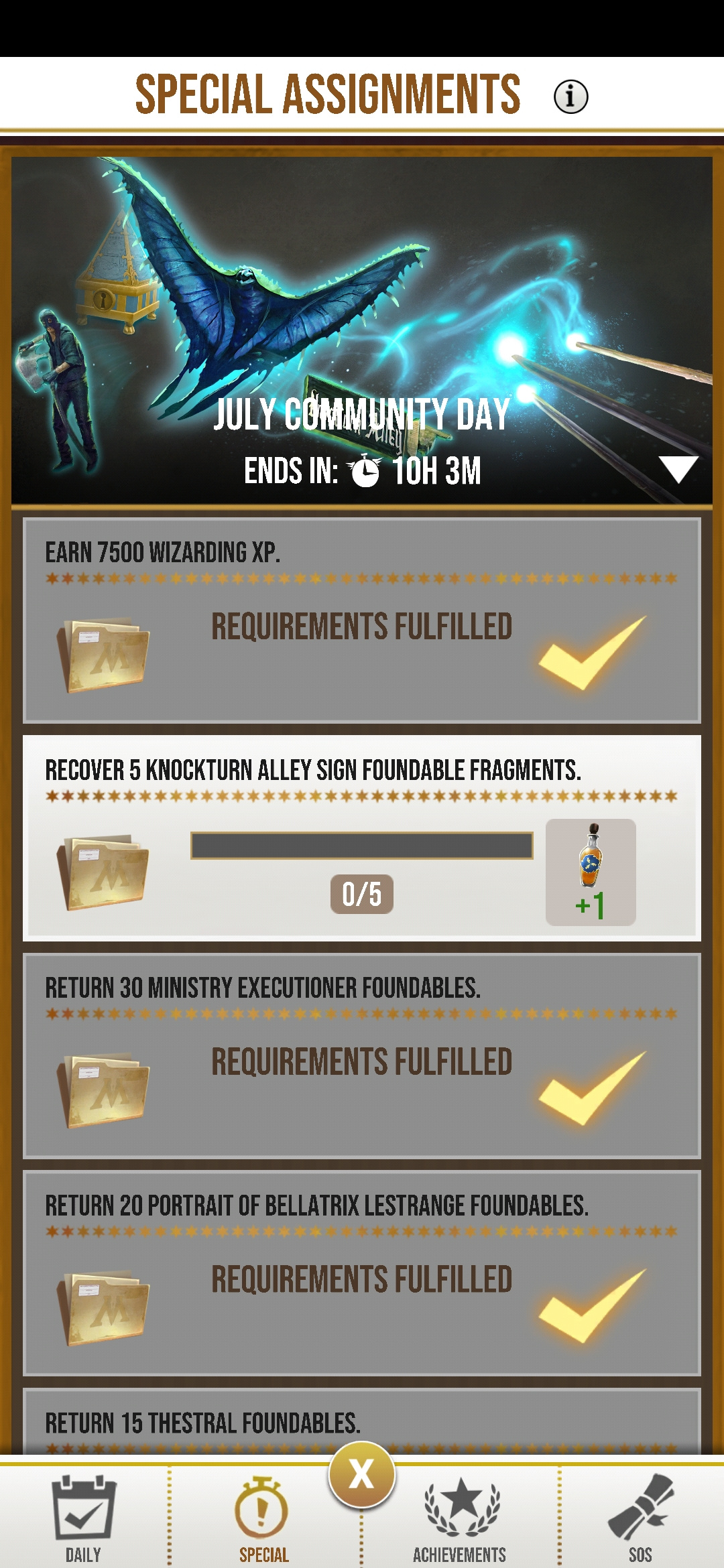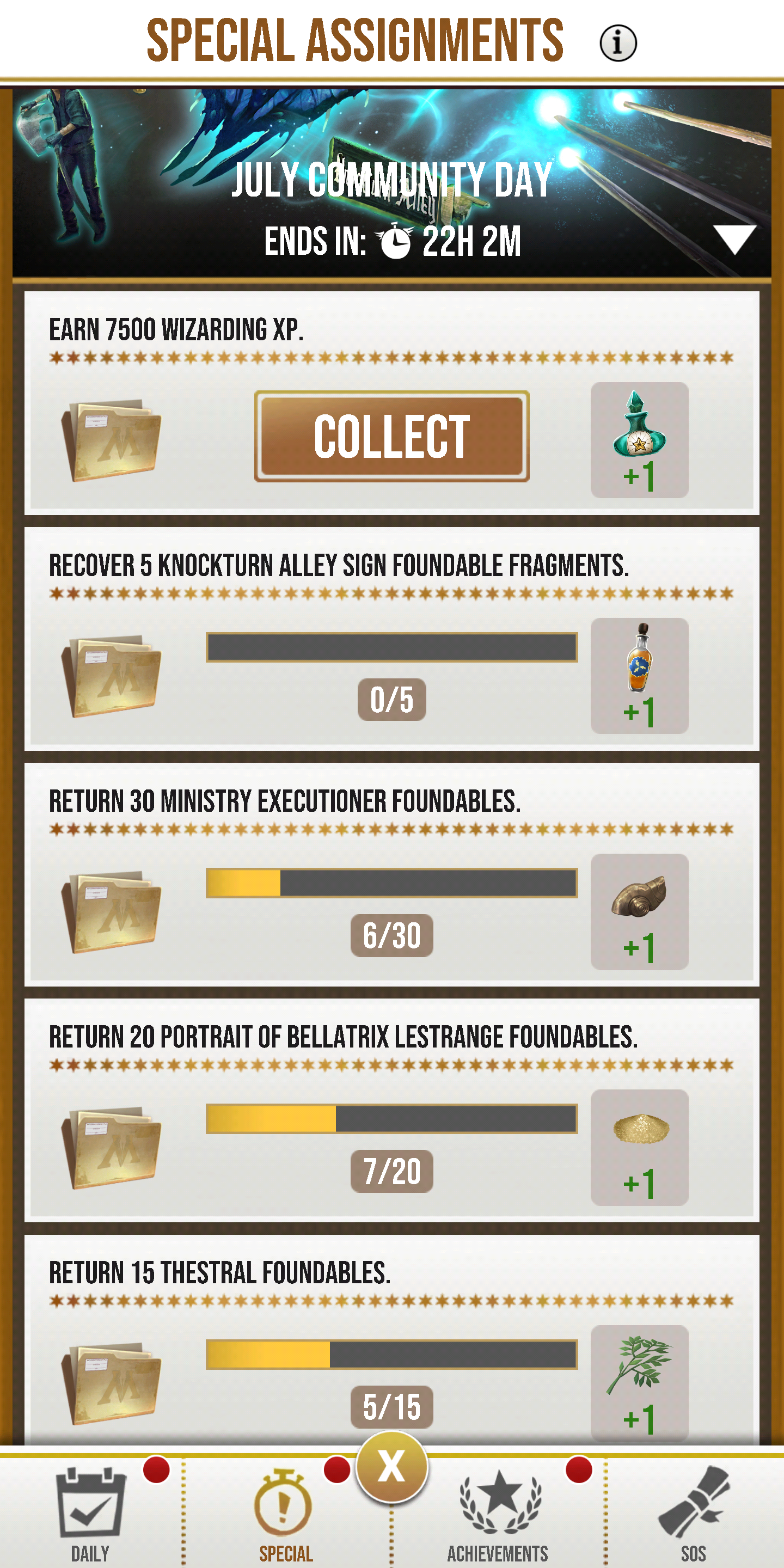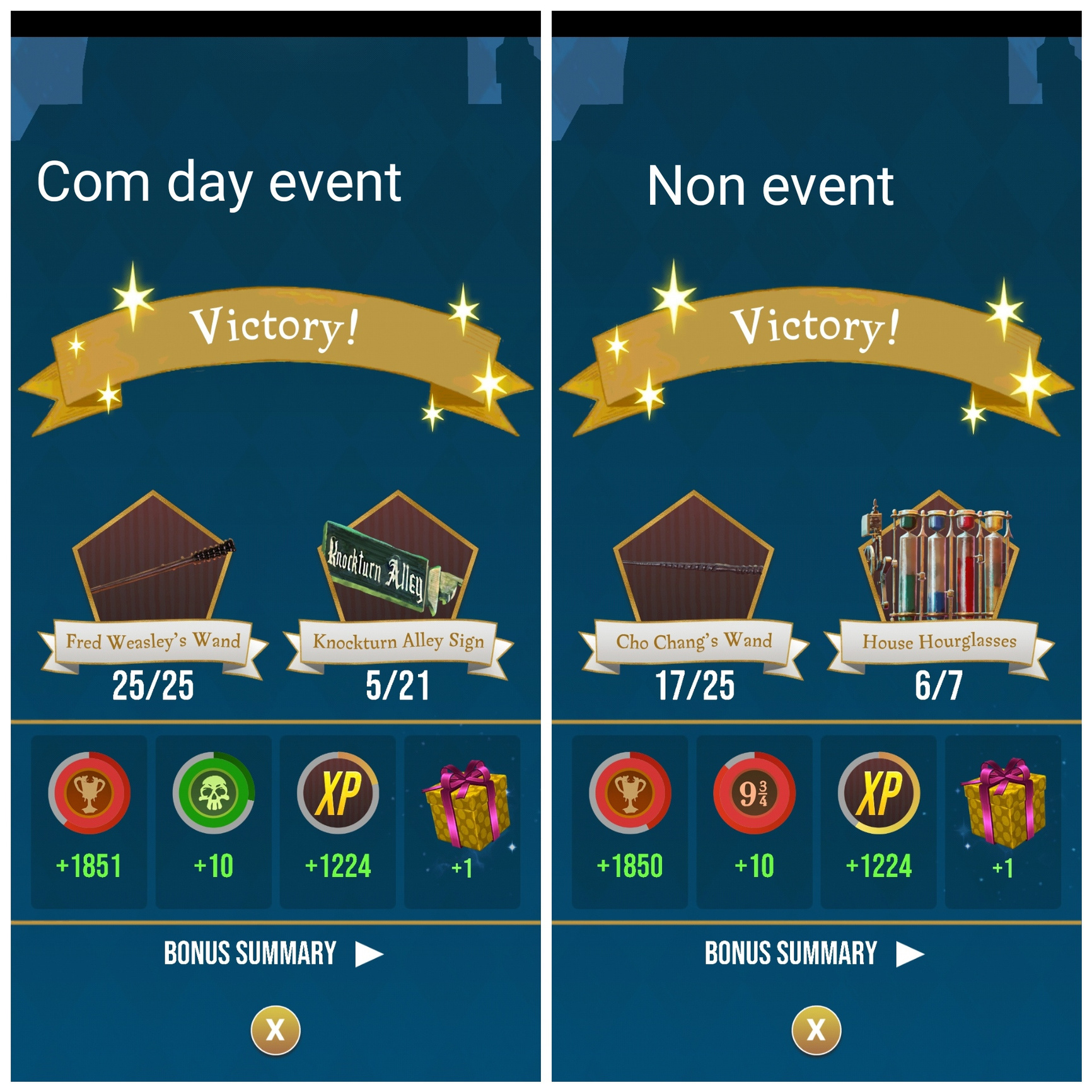 As for you quoting Lola earlier, all of those requirements have been met. Tonics are brewing in 30 minutes with master notes, and Knockturn Alley page foundables are all boosted for Community Day.